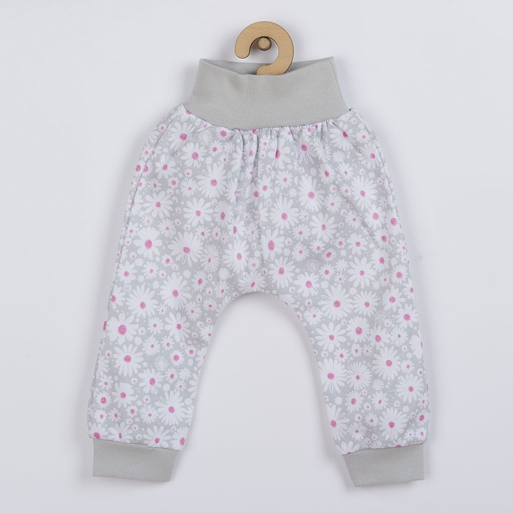 Roztomilá dívčí 2-dílná soupravička české značky New Baby Happy Flower pro miminka. Soupravička je vyrobena z velmi příjemného, měkkého a kvalitního materiálu, který je vhodný pro miminka. Obsahuje tričko a tepláčky. Tričko zdobí nápis Happy flower a šmrncovní volánkové rukávky. Zapínání na cvoček u krčku na zadní straně. Tepláčky mají širší lem, jsou zúžené na nohavičkách s lemem a jsou celopotištěné květinkami. V této soupravičce, která je precizně a kvalitně ušitá se bude miminko cítit velmi příjemně. Složení: 100% bavlna.