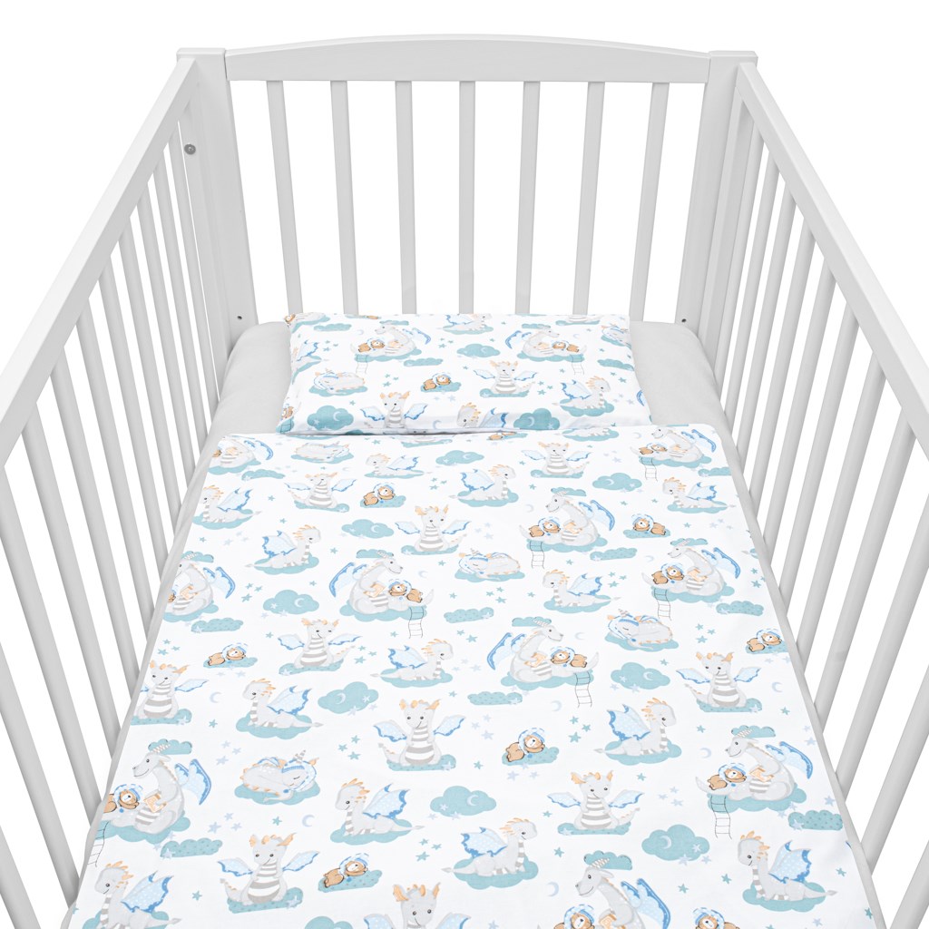 Dětská 2-dílná souprava do postýlky New Baby Dráček je produktem české značky New Baby. Souprava je vyrobena ze 100% bavlny. Kvalitní provedení a nádherný detský motiv. Obsahuje povlečení na polštářek cca 40x60 cm + povlečení na peřinku cca 120x90 cm. Materiál 100% bavlna.