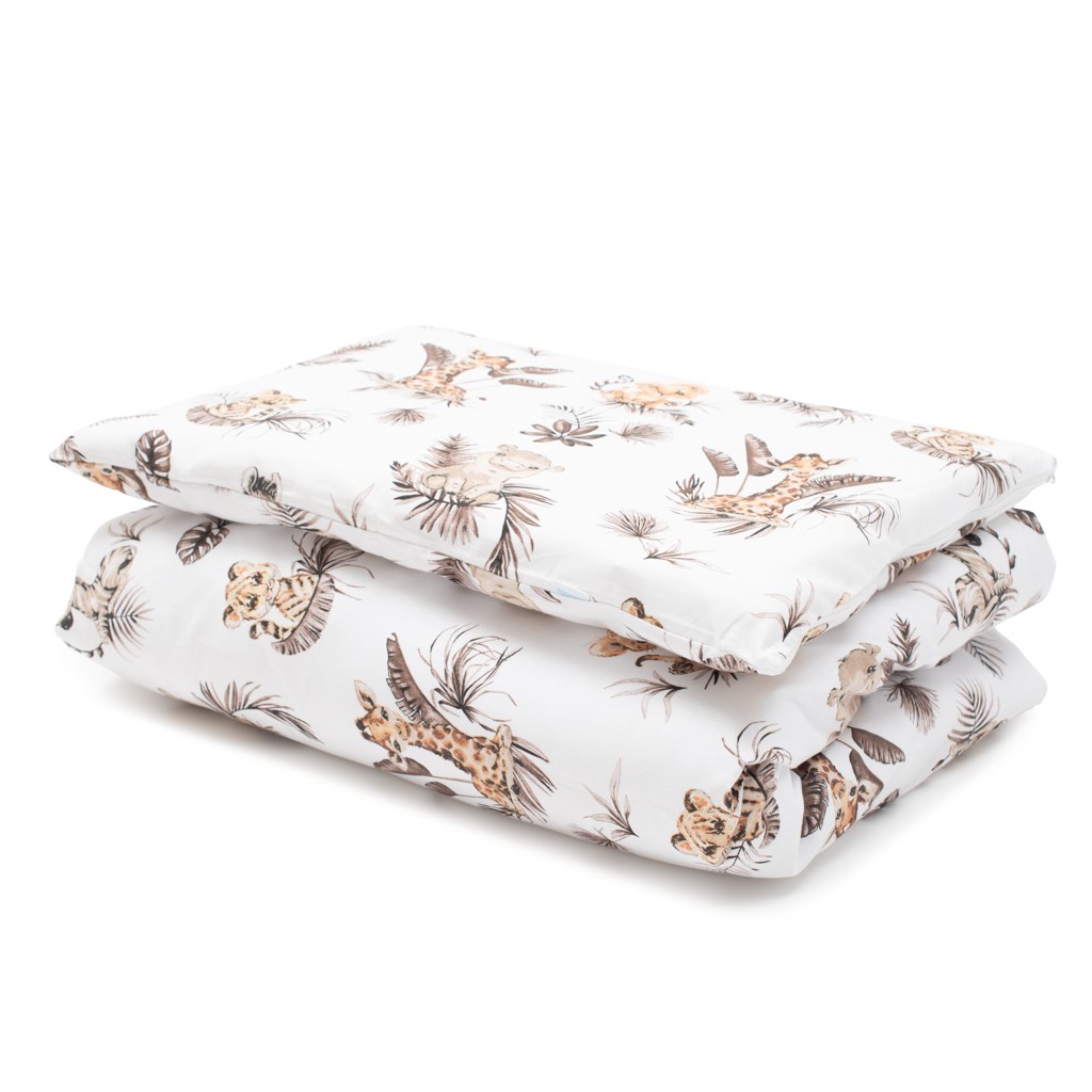 Dětská 2-dílná souprava do postýlky New Baby Safari je produktem české značky New Baby. Souprava je vyrobena ze 100% bavlny. Kvalitní provedení a nádherný detský motiv. Obsahuje povlečení na polštářek cca 40x60 cm + povlečení na peřinku cca 120x90 cm. Materiál 100% bavlna.