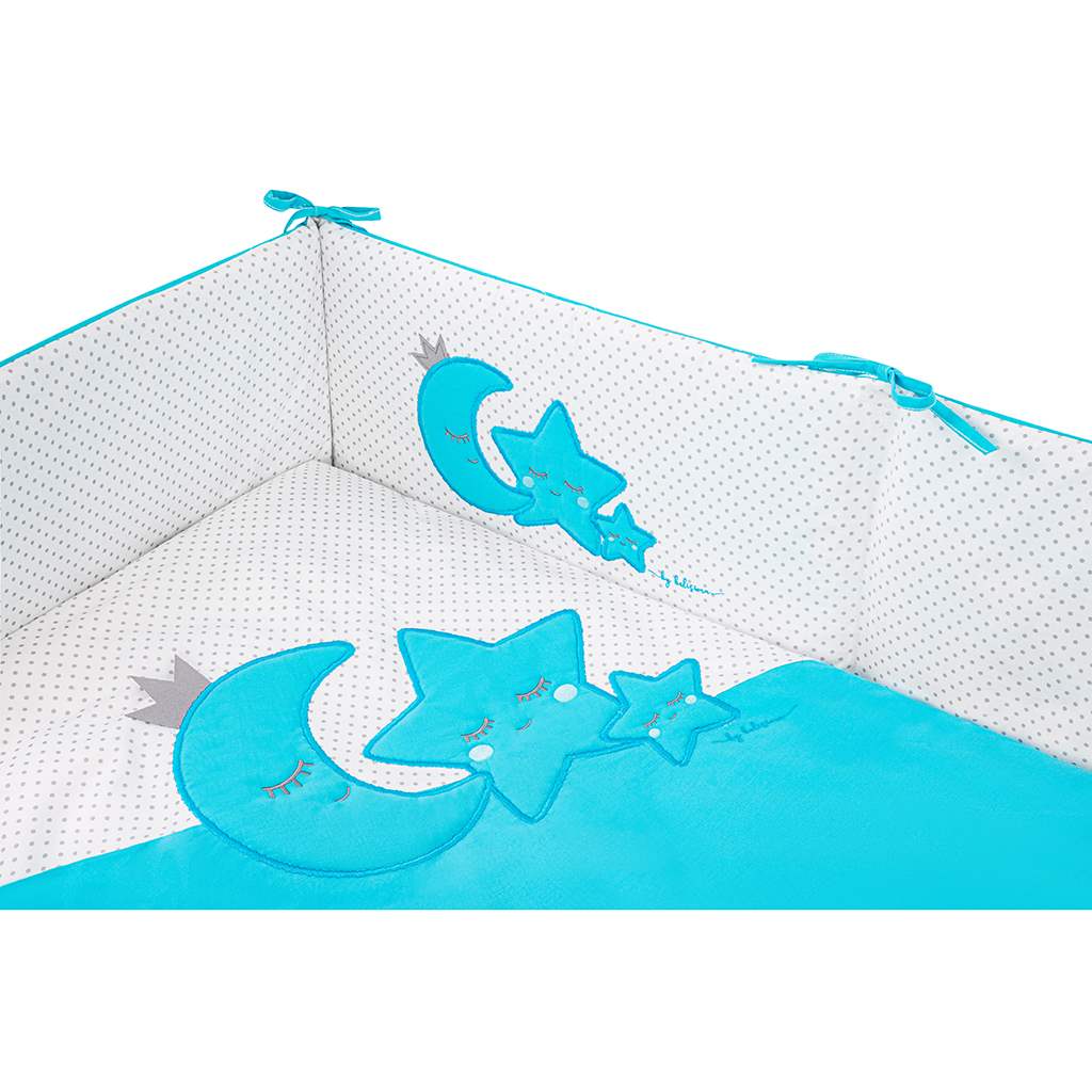 Krásná dětská bavlněná 3-dílná souprava do postýlky Belisima Magic Stars pro miminka. Je vyrobena z měkkého, příjemného materiálu. Obsahuje povlečení na polštářek cca 40x60 cm, povlečení na peřinku cca 90x120 cm a mantinel cca 180 cm. Materiál 100% bavlna.