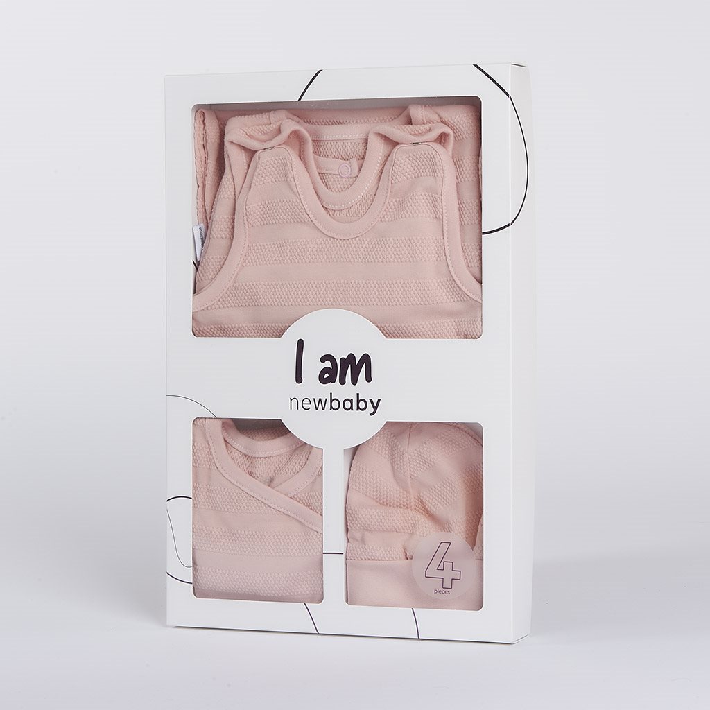 Roztomilá kojenecká 4-dílná soupravička české značky New Baby I AM pro miminka. Soupravička je vyrobena z velmi příjemného, měkkého a kvalitního materiálu, který je vhodný pro miminka a je vhodná nejen do porodnice. Obsahuje celorozepínací body s dlouhým rukávkem, dupačky, kabátek a čepičku. Body má boční zapínání po celé délce a mezi nožičkama na cvočky. Dupačky mají zapínání na cvočky na ramínkách a mezi nožičkama, coš usnadní oblékání a přebalování. Kabátek má zapínání na cvočky po celé délce. Čepička s širším lemem dobře drží na hlavičce miminka a nepadá. Je velmi praktická a netlačí na hlavičku miminka. Celá soupravička má nový neobyčejný design s atraktivním vzorem látky. Je navržena s ohledem na potřeby miminka a je vhodná i jako milý dáreček. Soupravička je v praktické Eko krabičce. Složení: 100% bavlna.
