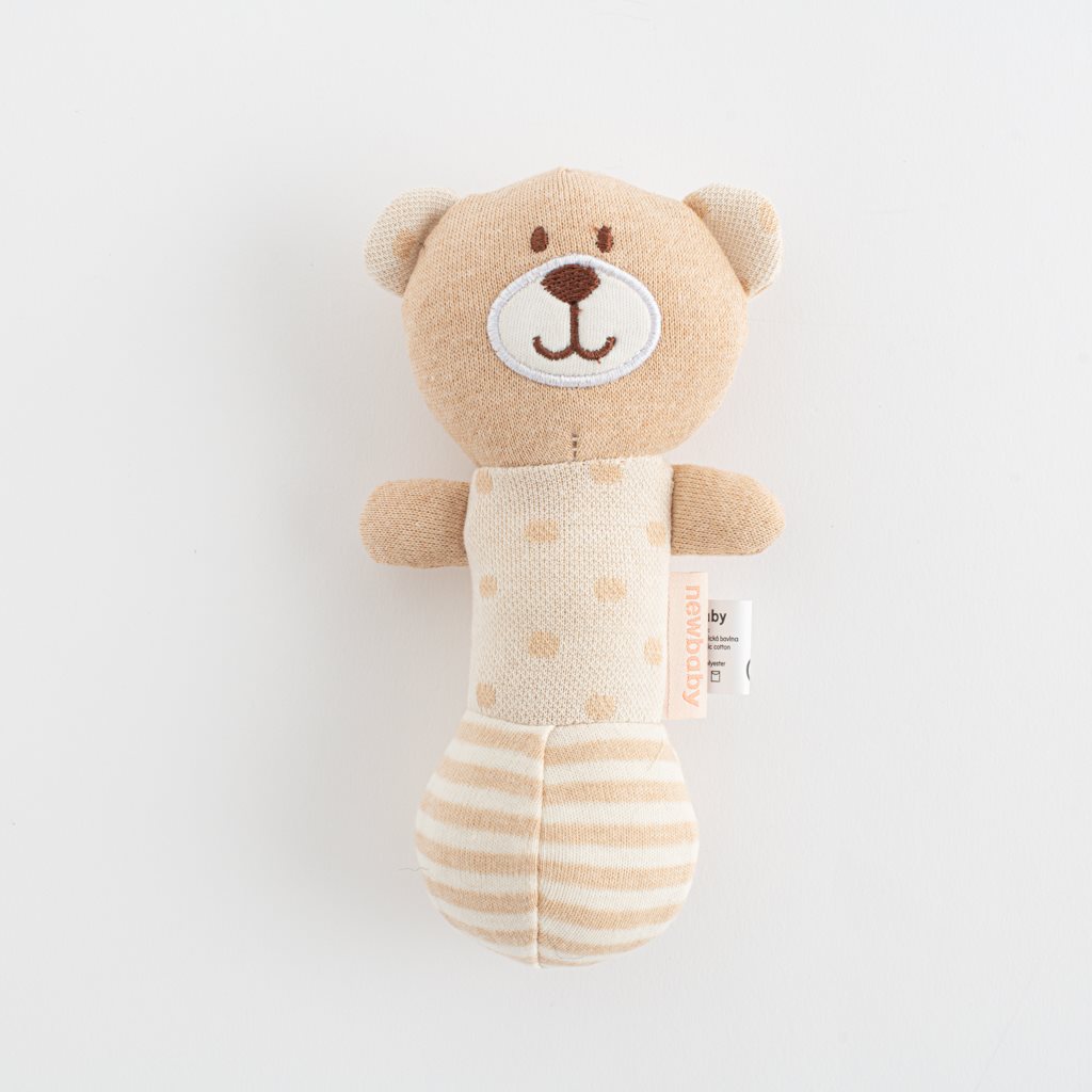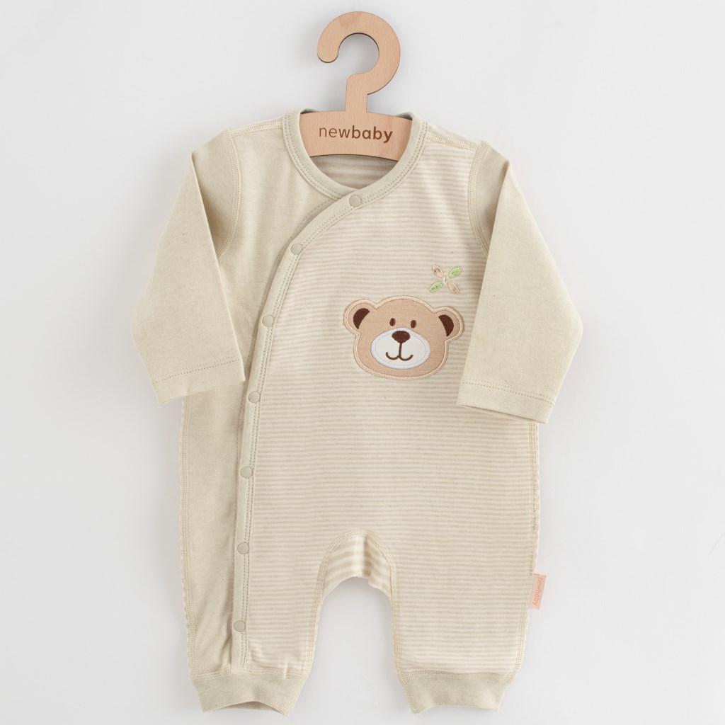 Krásný dárkový set z organické bavlny české značky New Baby. Set se skládá z overálku, bryndáčku, dečky s kapucí a hračky. Všechny části jsou zdobeny nášivkou medvídka. Kojenecký overálek bez šlapek ukončen pružným lemem má boční zapínání na cvočky po celé délce. Bryndáček lze zapnou do 2 velikostí. Zapínání je na 2 cvočky. Dečka s kapucí je velmi příjemná na dotek a praktická kapuce chrání hlavičku děťátka před chladem. Po celém obvodu má dečka kvalitní lemování. Lze využít i jako osušku. Hračka s chrastítkem a pískátkem přiláká pozornost dítěte, učí ho, baví a rozvíjí tak dětskou fantazii. Vhodné pro děti od prvních dnů života. Nádherný a kvalitní set je dodáván v proutěném košíčku, stylově zabalený tylovou tkaninou a mašlí, která vše luxusně podtrhne. Set je vhodný i jako milý dáreček.
