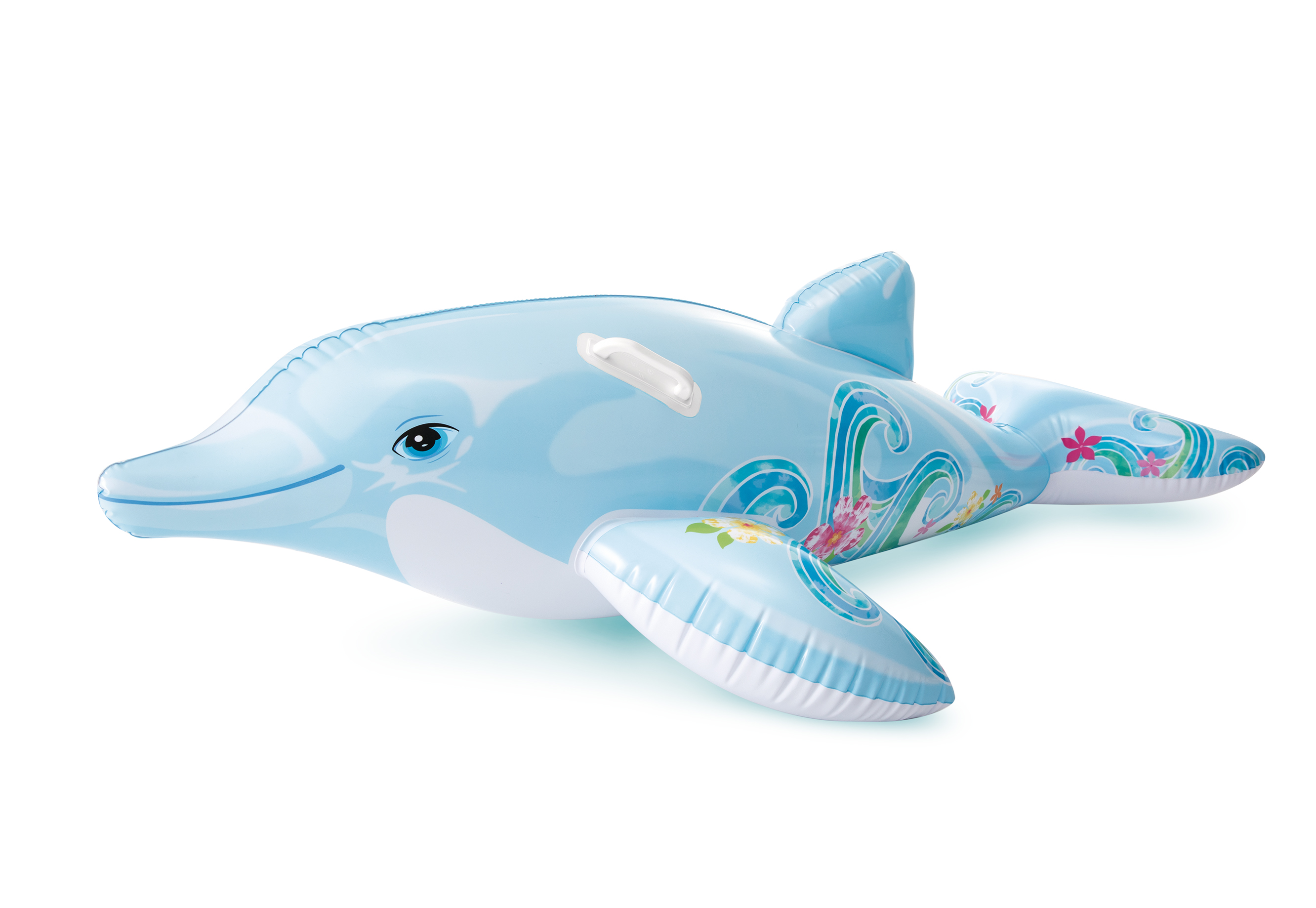 Je nafukovací hračka vhodná jak do bazénu, tak na jezero nebo do moře. Tvar delfína je přizpůsobený tak, aby umožňoval pohodlné sezení pro jedno dítě. Delfín je opatřen na bocích držátky.