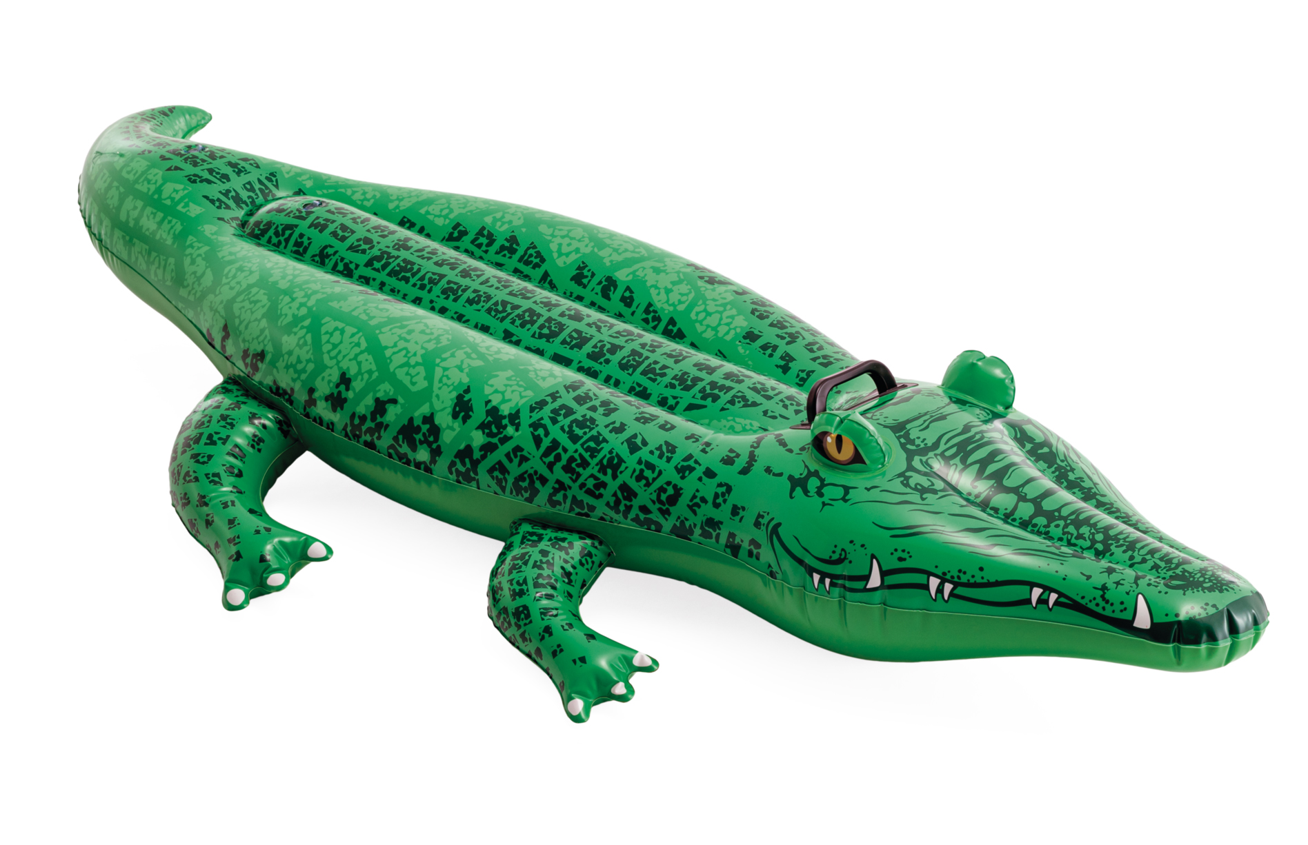 Nafukovací lehátko v designu reálného krokodýla nesmí chybět při letních hrátkách u vody! vyrobeno z kvalitního vinylu 2 vzduchové komory bezpečnostní ventily držadlo součástí opravná sada Nosnost: 40 kg Rozměry: 168 x 86 cm Doporučený věk: od 3 let