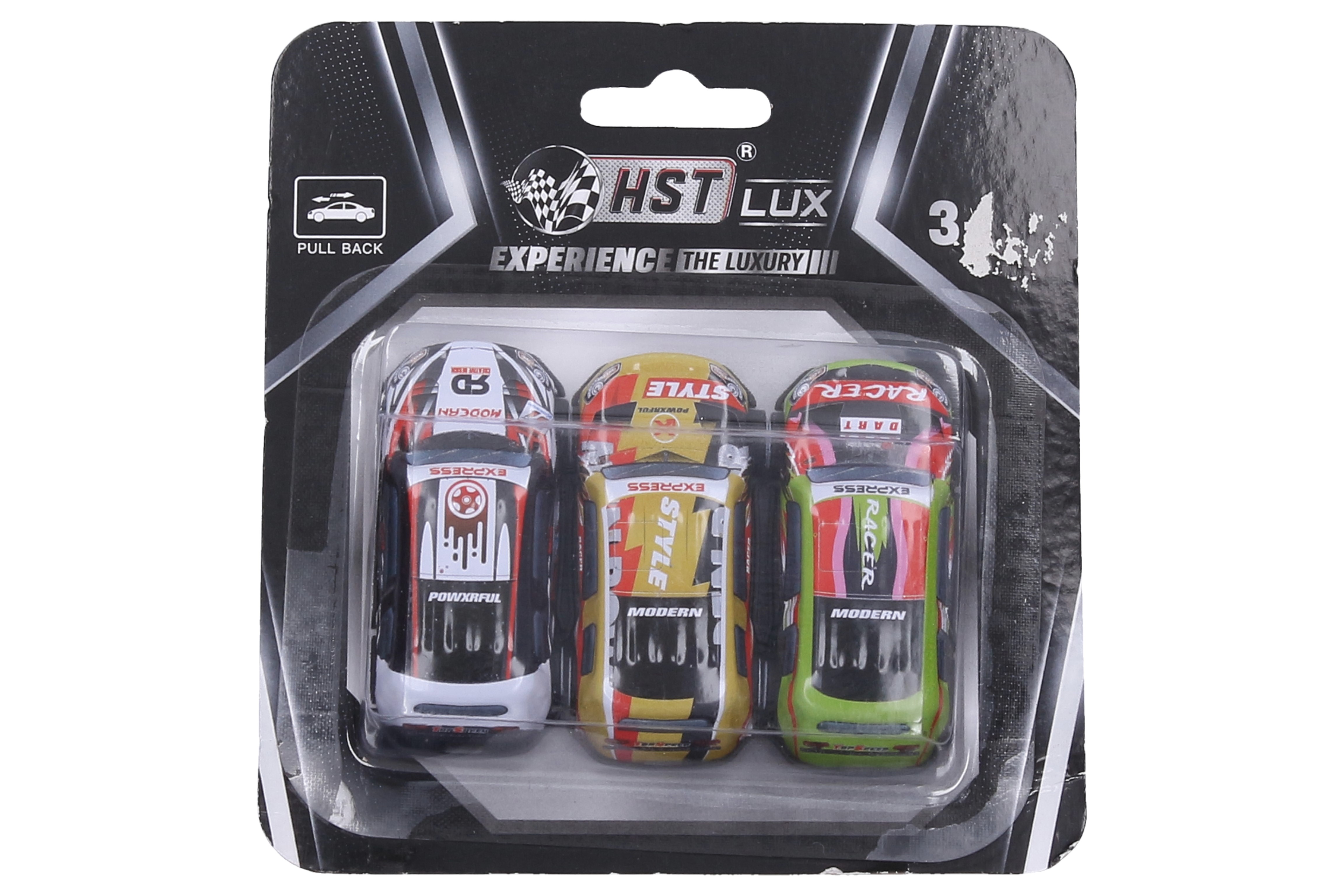 Auto kovové na zpětné natažení set. Velikost autíčka 6,8x2x3 cm. Balení obsahuje 3 auta. Mnoho variant.