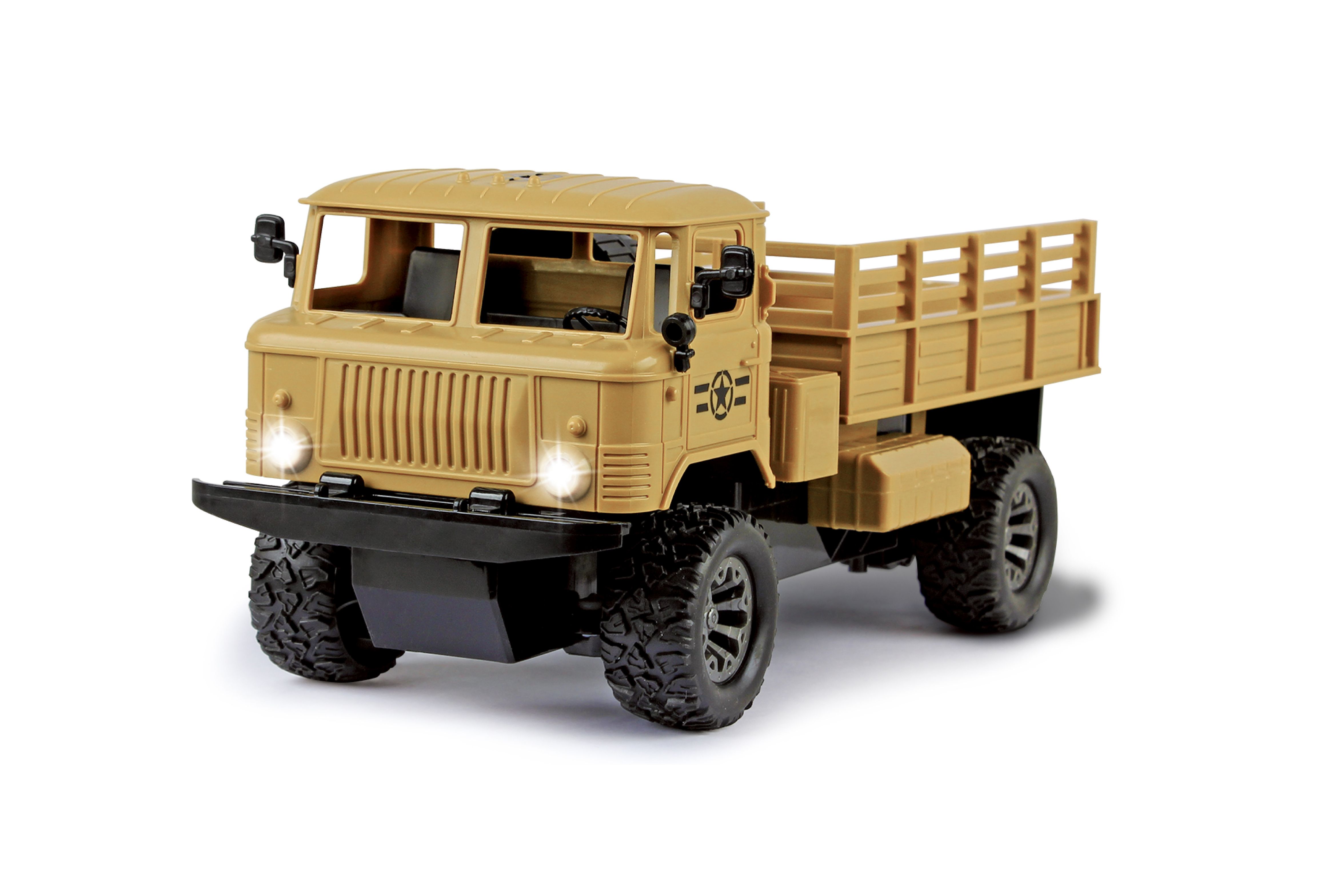 Auto vojenské RC na dálkové ovládání. Rozměry 25x12x13 cm. Frekvence 27 nebo 40MHz. Světelné efekty. 3.7V bateriový pack do auta součástí, 2xAA do ovladače nejsou součástí. USB kabel součástí. Přepínač ON/OFF na spodní straně auta.