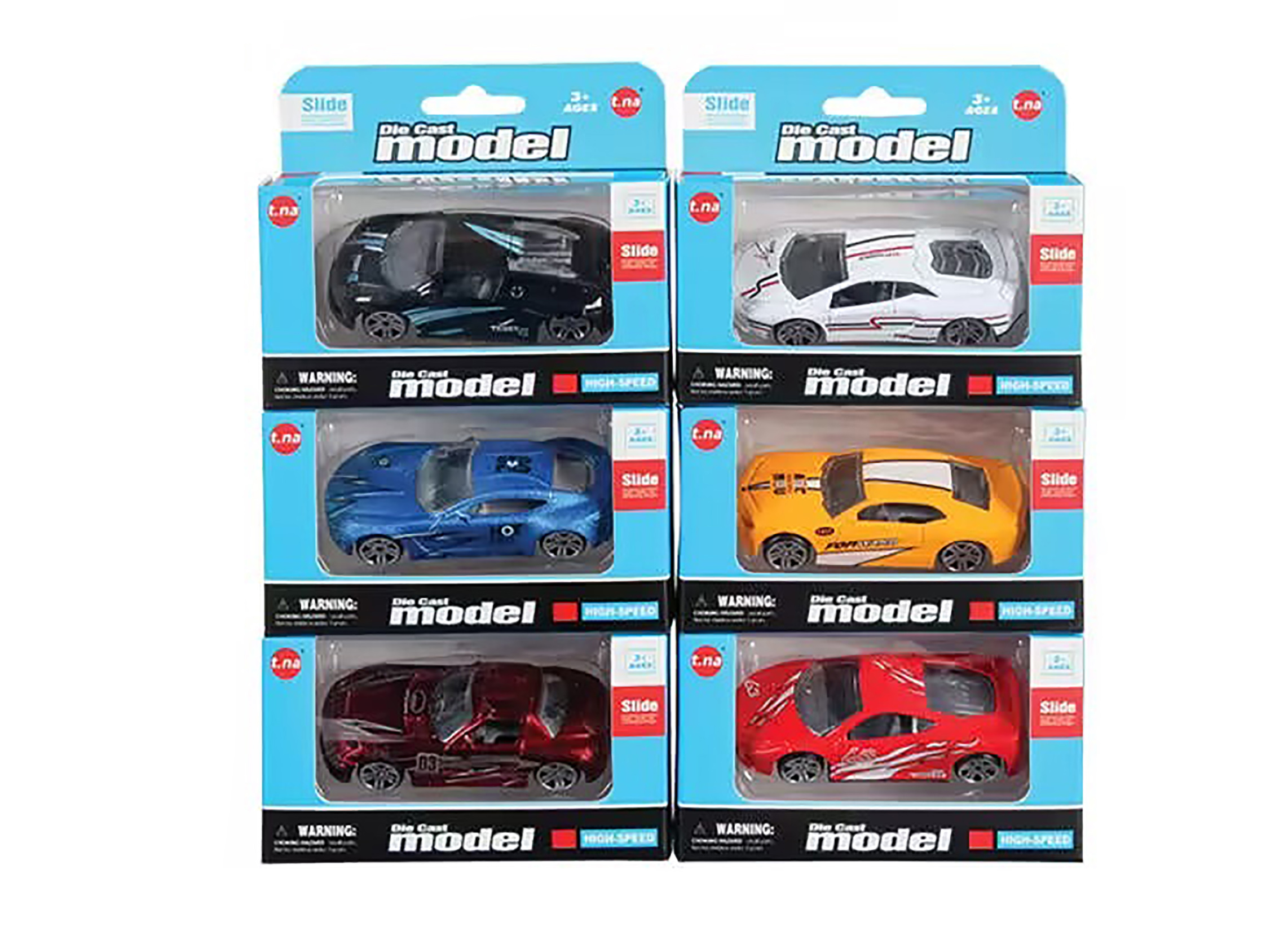 Auto závodní, volná kola. Velikost 7,5 cm. Display box 24 ks. 6 variant.