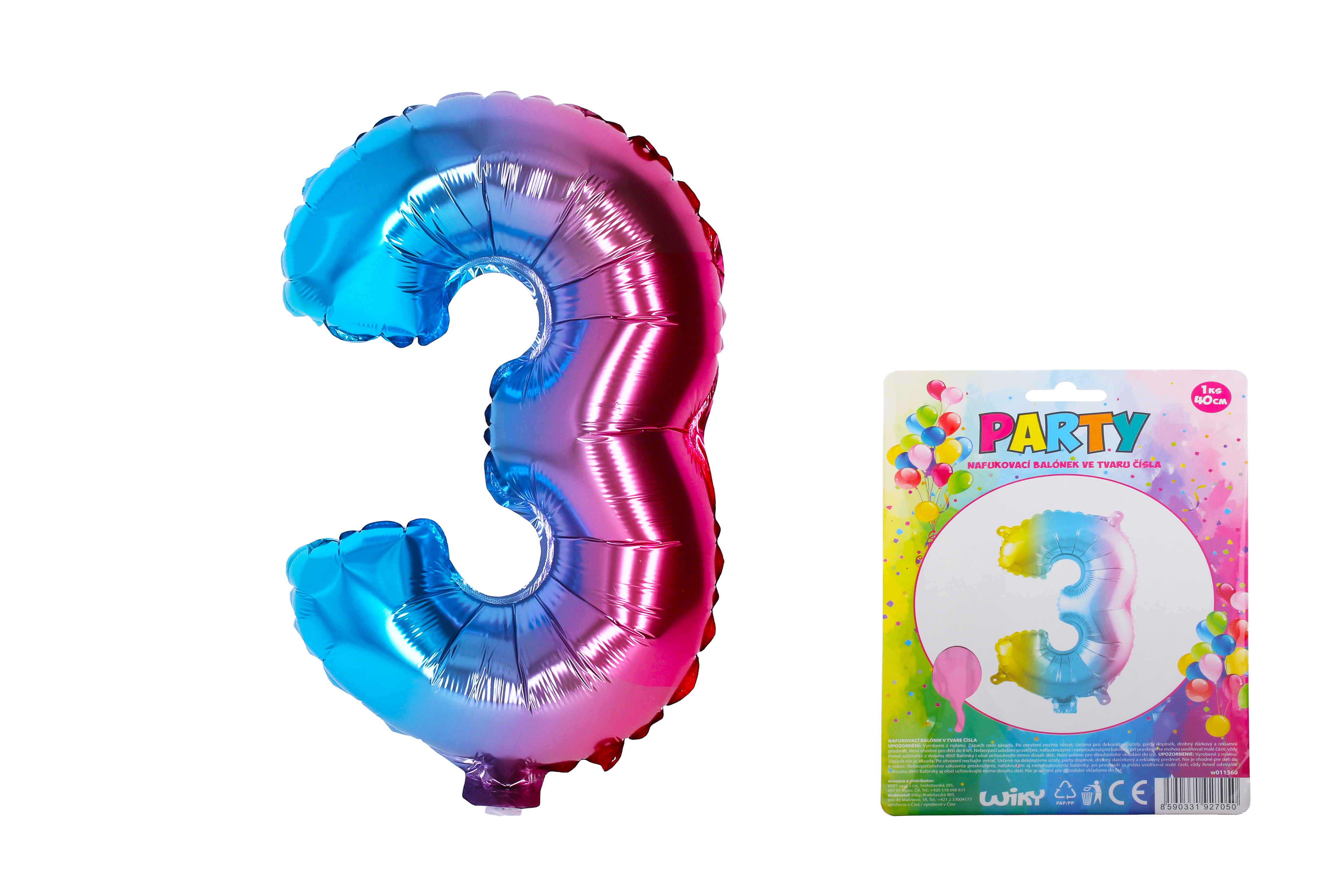 Duhový nafukovací balónek ve tvaru čísla 3 je vhodný jako doplněk na narozeninovou párty!