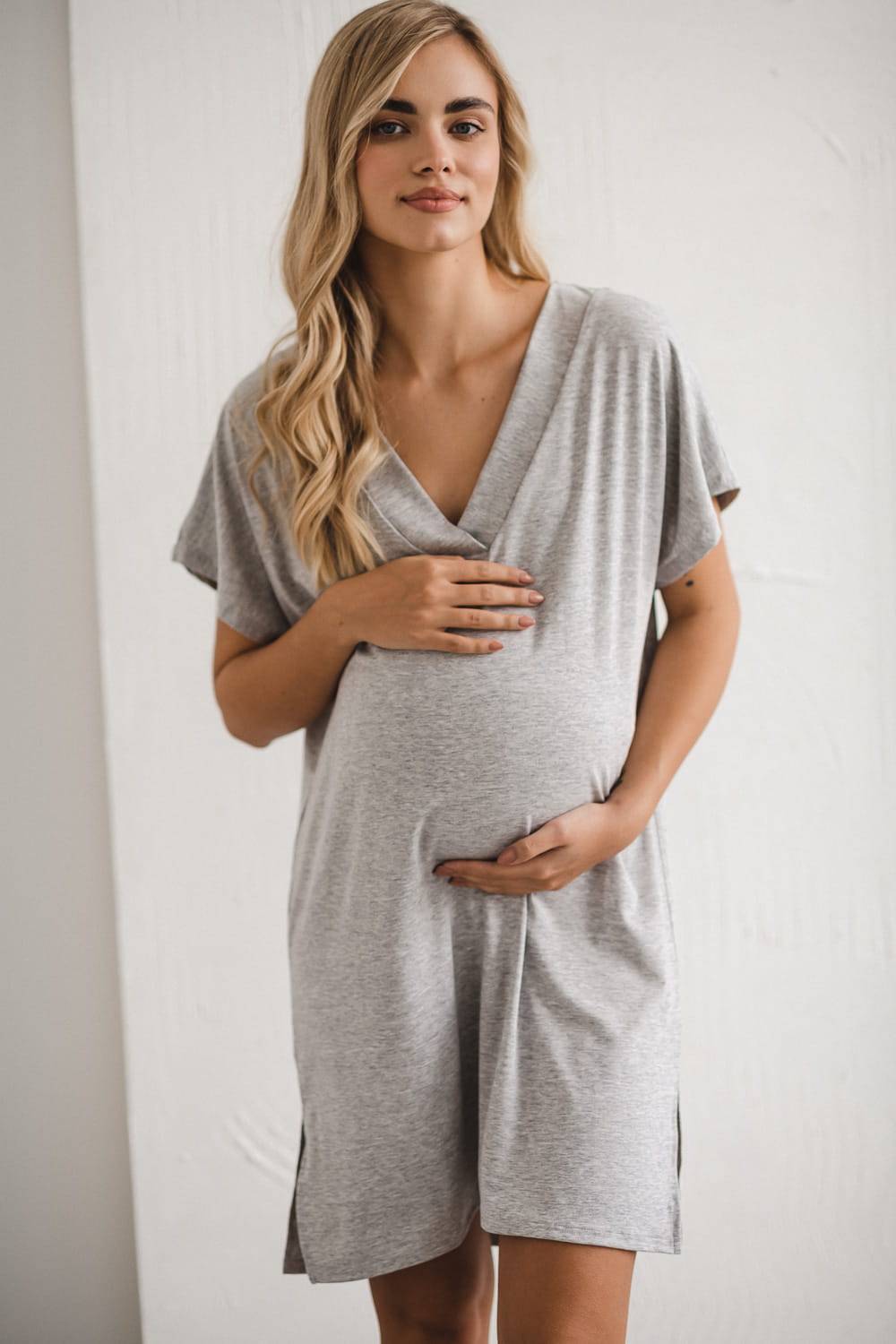 Vhodná dlouhá košile do porodnice, ve které se můžete bez rozpaků procházet po chodbě a krmit své novorozeně po porodu vleže.