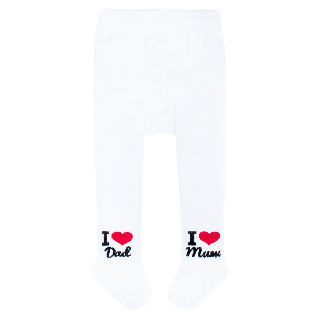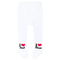 Bavlněné punčocháčky New Baby. Punčocháčky mají roztomilý obrázek na zadečku s nápisem I Love Mum and Dad. Na jedné nožičce je nápis I Love Mum a na druhé I Love Dad. Jsou vyrobeny z kvalitního materiálu, který nepouští barvu a drží tvar. Punčocháčky jsou velmi praktické a budou slušet všem malým dětem. Složení: 80% bavlna, 16% polyamid, 4% elastan. Velikost 56-62.