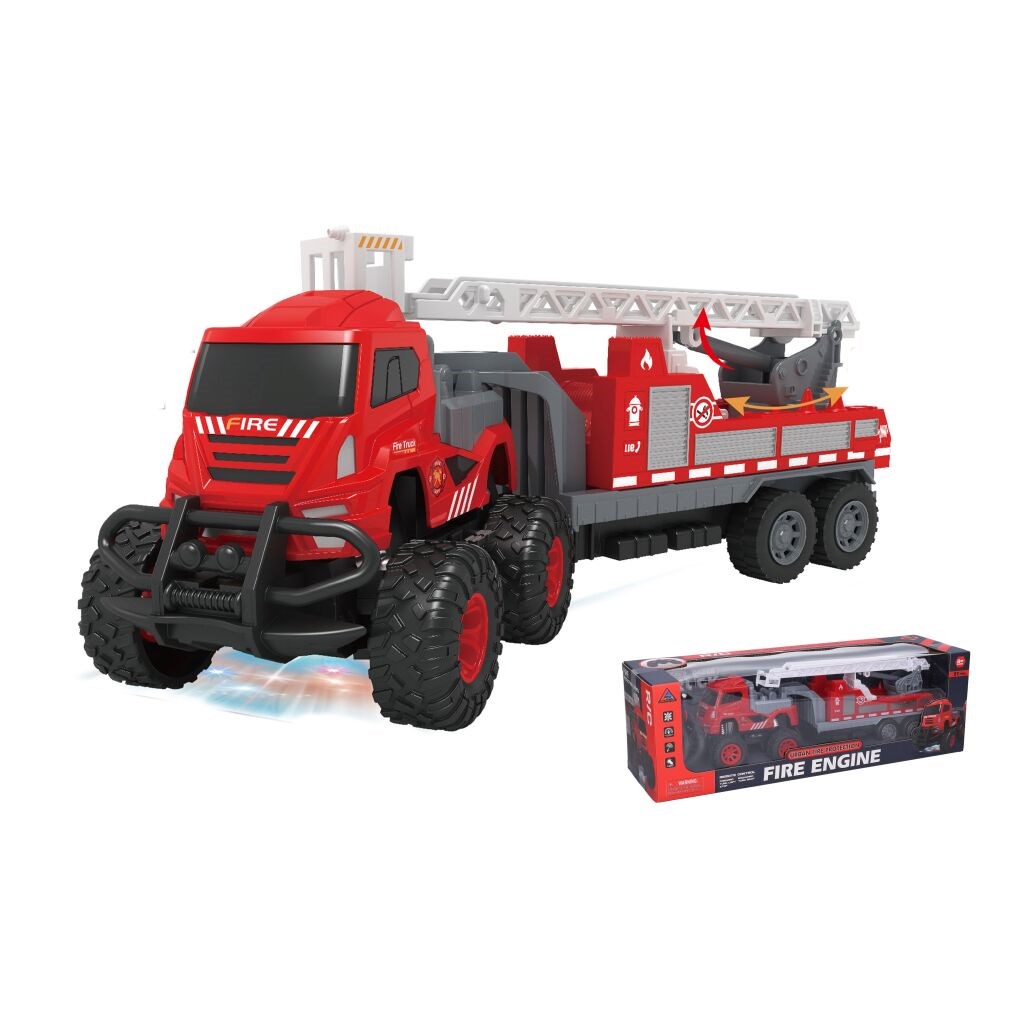 Auto tahač hasičský RC na dálkové ovládání. Rozměry 33x11x12 cm. Světelné efekty. 3xAA baterie do auta, 2xAA do ovladače nejsou součástí.