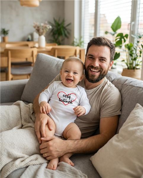 Originální bavlněné kojenecké body s dlouhým rukávem New Baby, s vtipným nápisem celý tatínek. Barvy použité k potisku jsou certifikované a vhodné pro miminka. Je vyrobeno z příjemného a kvalitního materiálu, ve kterém se bude Vaše miminko cítit příjemně. Body má zapínáni na cvočky na ramínku a mezi nožičkami, což usnadňuje oblékání a přebalování. Dopřejte Vašemu miminku vyniknout v originálním body. Složení: 100% bavlna. Rozměry: obvod kolem hrudníku cca 34 cm, délka rukávu cca 16 cm, celková délka cca 30 cm.