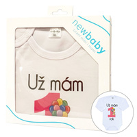 Originální bavlněné kojenecké body s dlouhým rukávem New Baby, s vtipným nápisem Už mám 1 rok a obrázkem velké jedničky s balónky. Barvy použité k potisku jsou certifikované a vhodné pro miminka. Je vyrobeno z příjemného a kvalitního materiálu, ve kterém se bude Vaše miminko cítit příjemně. Body má zapínáni na cvočky na ramínku a mezi nožičkami, což usnadňuje oblékání a přebalování. Dopřejte Vašemu miminku vyniknout v originálním body. Složení: 100% bavlna. Rozměry: obvod kolem hrudníku cca 46 cm, délka rukávu cca 24 cm, celková délka cca 40 cm.