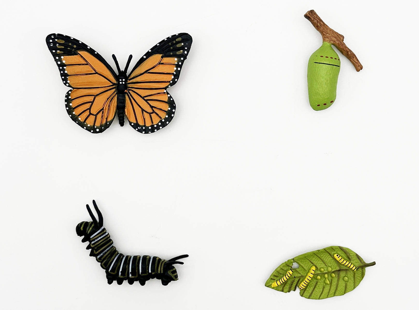 Figurka Motýl 4 vývojové fáze. Velikost 8 cm. 4 varianty - vajíčka, housenka, kokon, motýl.