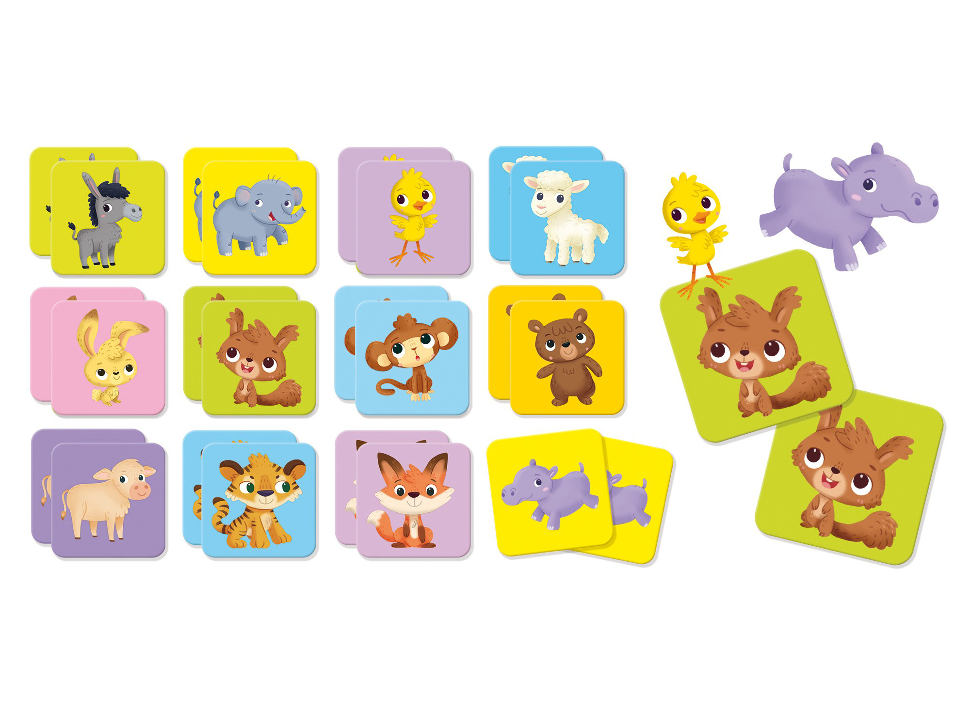 Liscniani Pexeso s mláďátky. 24 kartonových kartiček mláďaty zvířátek, 12 párů.