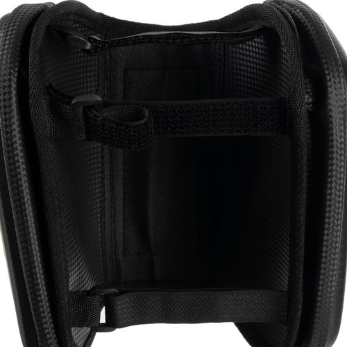 Tři silné nastavitelné pásky na suchý zip – drží brašnu pevně na rámu kola, bez pohybu. Vnitřní pěnová výstelka EVA chrání lak rámu před poškrábáním.