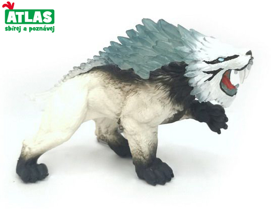 Figurka fantasy Šavlozubý tygr ledový. Velikost 13 cm. Přesné rozměry 12,8x6,8x9,8 cm.