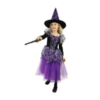 Nádherný kostým na Halloween pro všechny malé čarodějnice! Kostýmek o velikosti M je určen pro holčičky ve věkovém rozmezí 6-8 let (117-128 cm). Fialové šaty s nadýchanou sukní a tříčtvrtečním rukávem jsou zdobeny černým netopýřím vzorem. Součástí balení je také perfektně sladěný, stejně zdobený klobouk. Nejen letos je potřeba myslet EKO-nomicky i EKO-logicky! EKO-balení je vhodné zejména pro e-shopy kde zákazník nakupuje dle fotografie a není třeba velkého balení s věšákem. EKO-logicky – na balení bylo použito méně plastu a dalších materiálů. Jedná se o malý transparentní obal s fotografií. EKO-nomicky –EKO-obal zabere jen polovinu místa – šetřete skladová místa s námi!