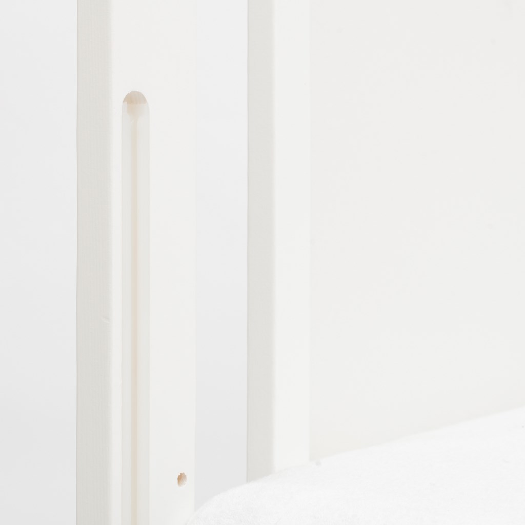 Boky postýlky jsou vyrobeny z 100% borovicového dřeva. Použité kvalitní ploché příčky jsou osazeny a ukotveny pomocí silného lepidla na vodní bázi.