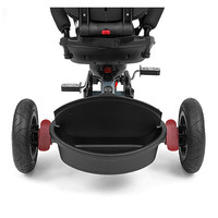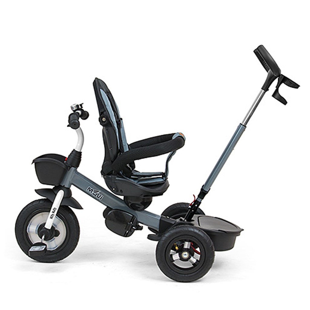 Je vyrobena z kvalitních a odolných materiálů. Má moderní konstrukci, pohodlné a ergonomicky tvarované sedadlo, které je otočné o 360 stupňů, což umožní dítěti cestovat ve směru nebo proti směru jízdy. O pohodlí a bezpečí během jízdy se stará bariérka, tříbodové bezpečnostní pásy, pohodlné stupačky nebo velká nafukovací kola, které skvěle absorbují rázy a poskytují dobrou přilnavost. Tříkolku může ovládat jak dítě, tak i rodič pomocí nastavitelné rukojeti pro tlačení. Po odebrání vodící tyče, sklápěcí stříšky, která chrání před sluncem nebo ostatních komponent bude sloužit jako tříkolka. Tříkolku lze používat rovněž jako alternativu golfového kočárku. Pro uložení hraček nebo potřeb pro dítě je zde praktický úložný košík.