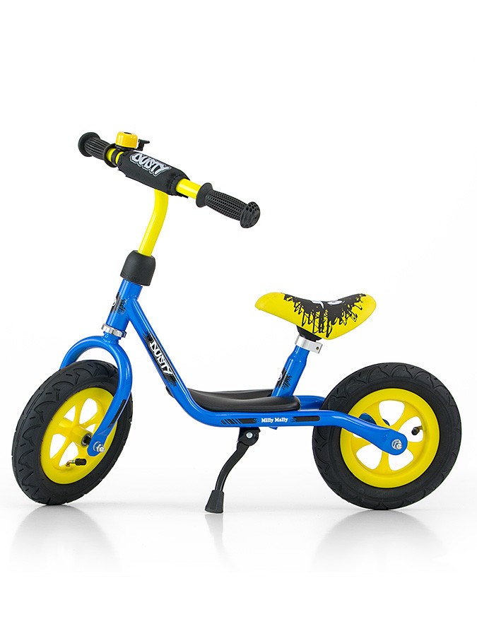 Dětské odrážedlo-kolo Milly Mally Dusty je ideální, když se dítě učí udržet rovnováhu. Je tou nejlepší alternativou pro kolo s bočními kolečky, takže pozdější jízda na klasickém kole bude mnohem jednodušší. Kolo je bez pedálů, díky čemuž se dítě dokáže soustředit hlavně na držení rovnováhy a směr jízdy. Má stojánek a nožičky lze položit na stůpátko.