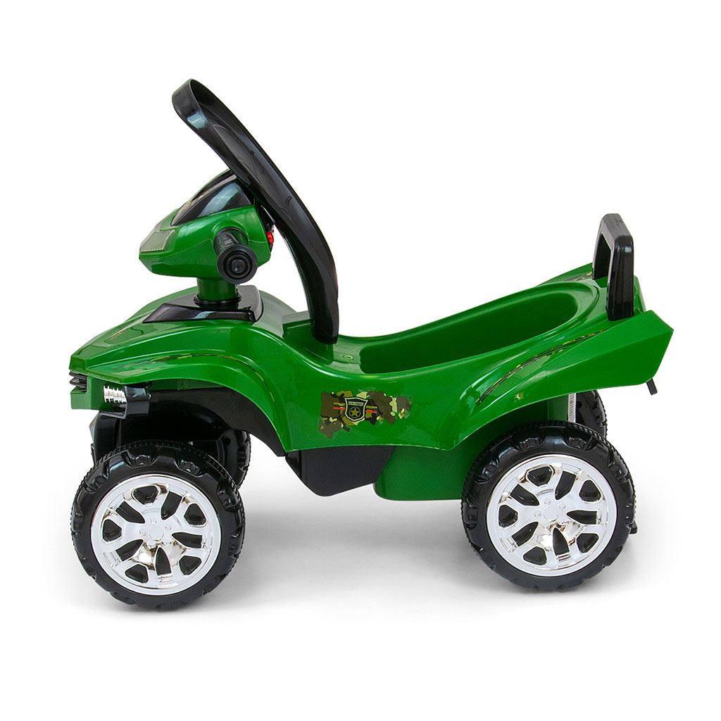 Jezdítko je vybaveno mnoha doplňky a pod sedadlem je úložný prostor, kam si váš malý řidič může uložit své nejcennější poklady a vzít si je všude s sebou. Interaktivní volant s hudebním panelem dále povzbuzuje vaše děťátko ke hře a zpříjemňuje hraní pomocí tlačítek, která přehrávají různé melodie. Řízení a tlačení má pozitivní vliv na motorickou koordinaci, stimuluje a podporuje hmat a zvyšuje přesnost pohybů rukou, zatímco zvukové signály a barevná světla stimulují sluch a zrak dítěte.