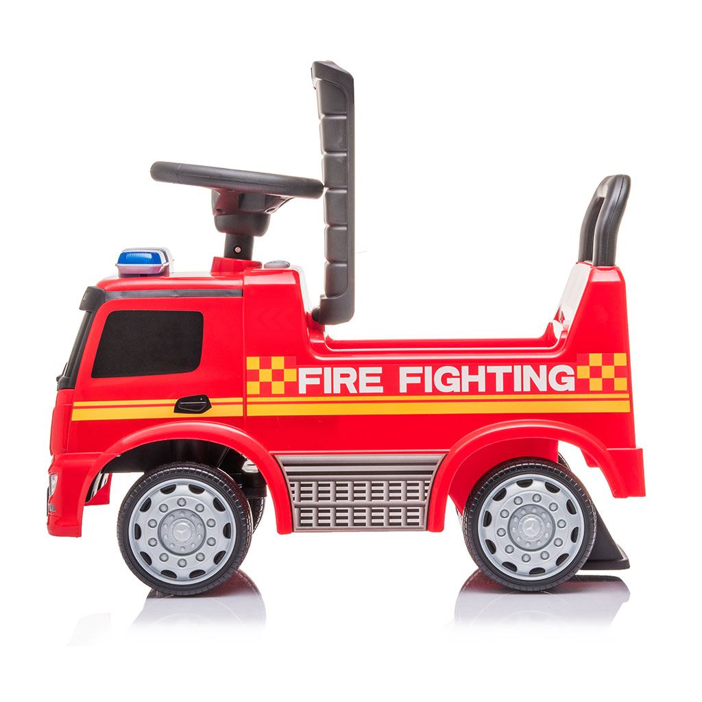 Licencované hasičské auto Baby Mix Mercedes Benz je opravdovou lahůdkou pro malé řidiče. Dokonalé zpracování a detaily jako kola, světla nebo tvar karoserie, přitahují pozornost všech a rychle se stanou oblíbenou hračkou doma i na procházce. Dětské vozítko Baby Mix Mercedes Benz je vyrobeno z vysoce kvalitního plastu. Váš malý závodník se na něm bude cítit jako na skutečném Mercedesu. Pod volantem se nacházejí dvě tlačítka pro zapnutí světelného "kohouta" a zvukové signalizace. Jezdítko pomáhá rozvíjet motorické schopnosti dítěte a zaručuje spoustu zábavy a radosti.