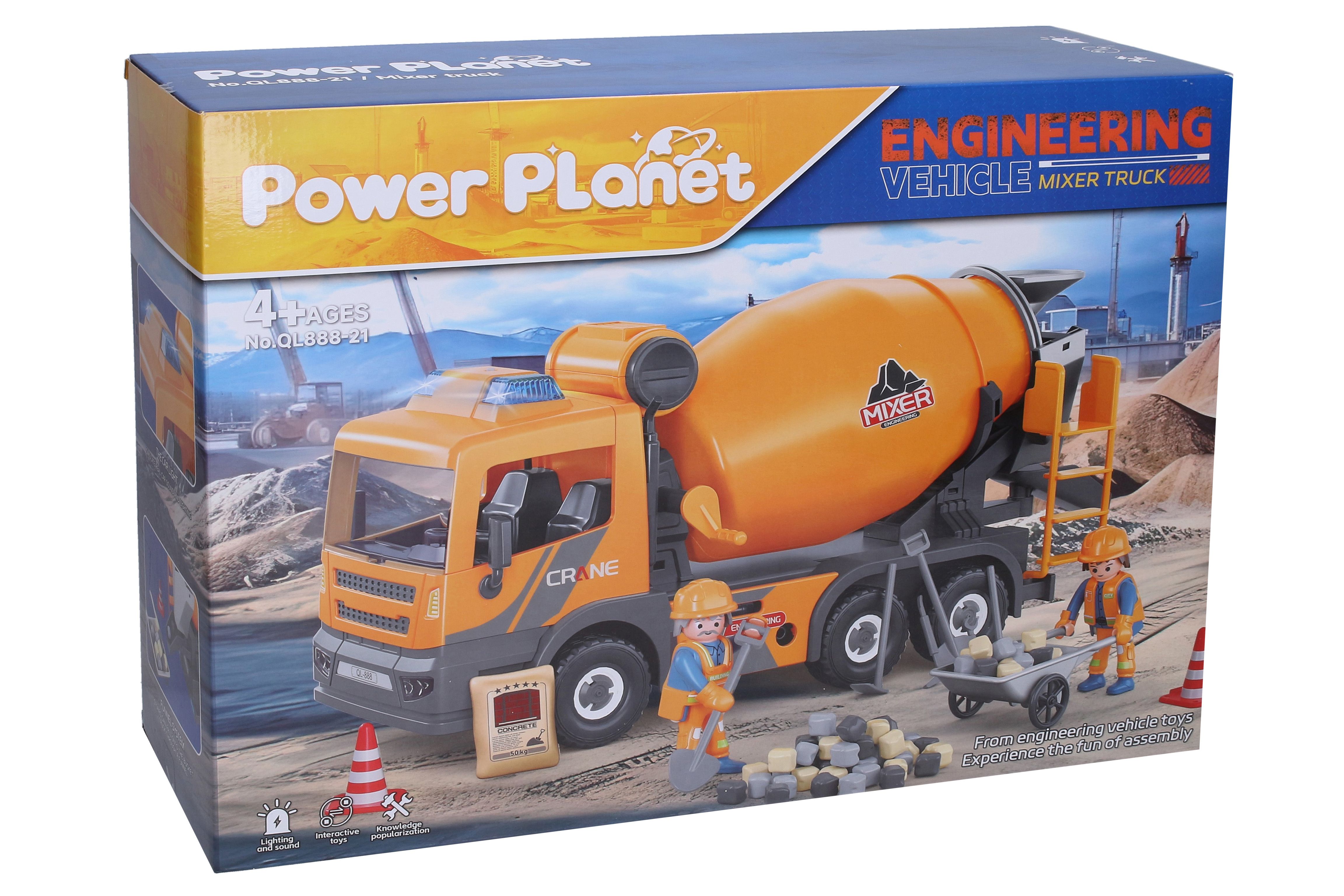 Domíchávač s efekty. Velikost 36 cm. Světelné a zvukové efekty. Obsahuje domíchávač, figurky dělníků, kolečko, náklad, nářadí. 2xAAA baterie nejsou součástí.