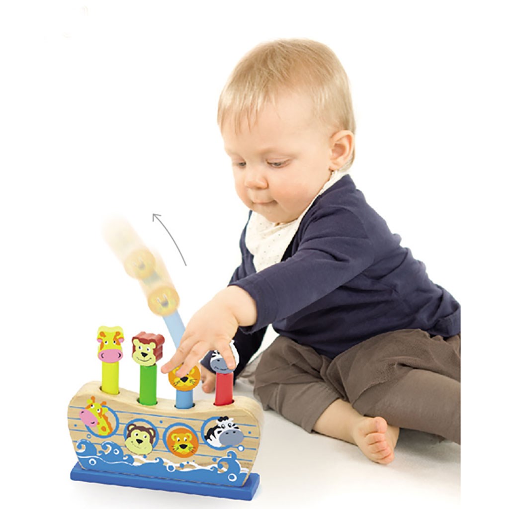 Dřevěná hra Noemova archa od společnosti Viga jsou hračkou, kterou si zamiluje každé dítě. Úkolem dítěte je "katapultovat" zvířátka stisknutím hlaviček zvířátek, která jsou umístěna na barevném dřevěném podstavci. Postavičky žirafy, opice, lva a zebry se na batole usmívají a zároveň se dítě může naučit rozpoznat, které zvířátko bylo umístěno na dřevěné hlavičce.