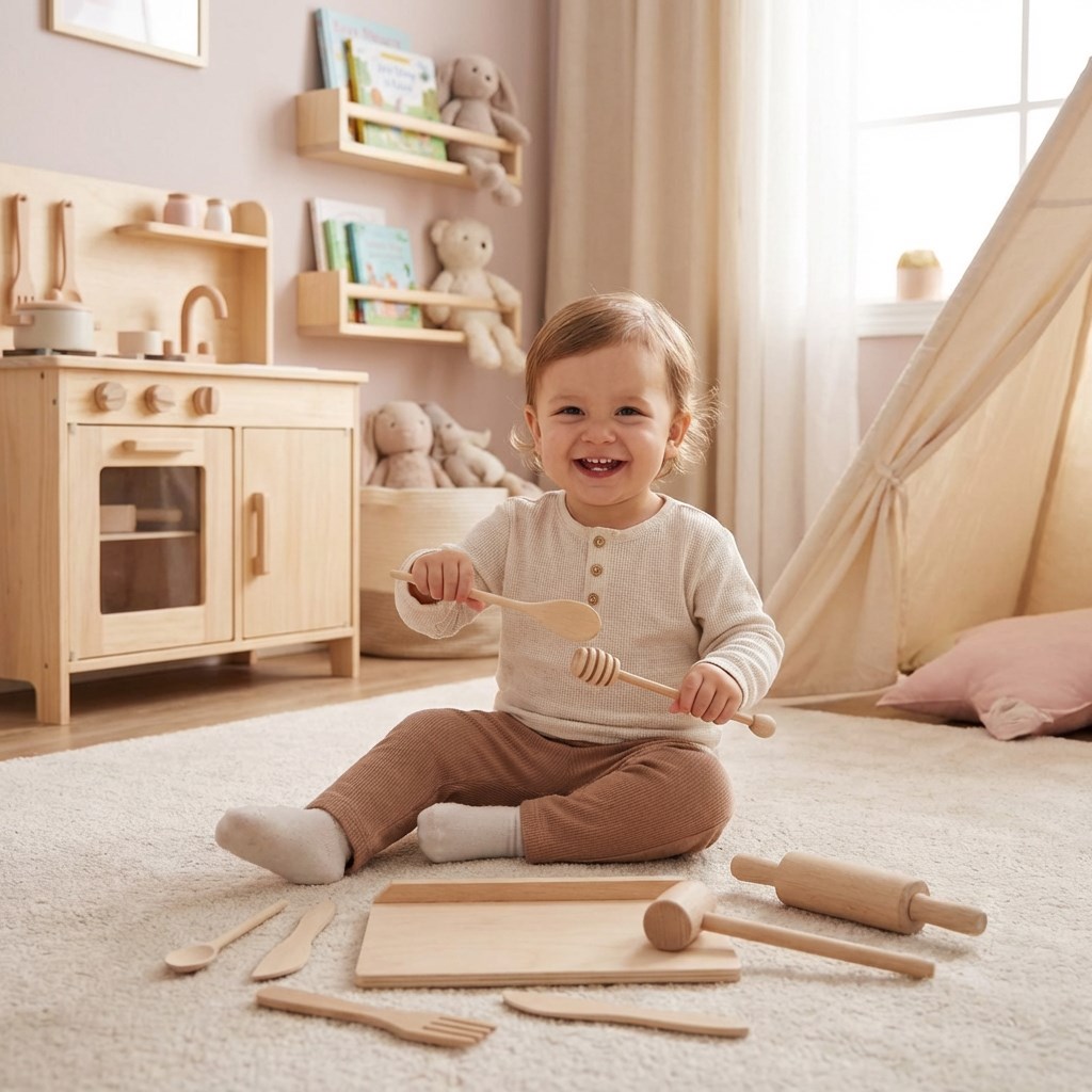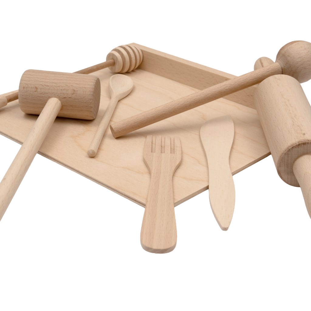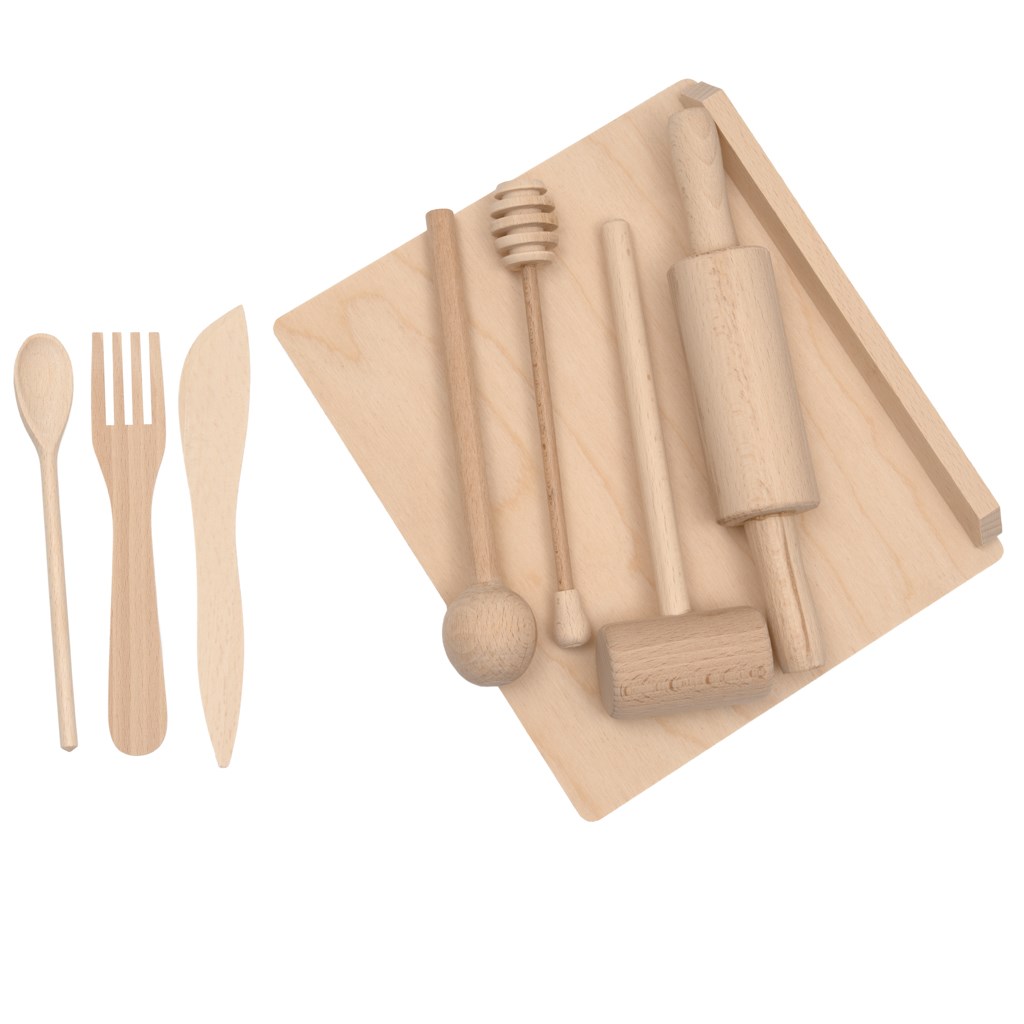 Staň se mistrem kuchyně už od mala. Tato krásná mini kuchyňská sada je jako stvořená pro malé ručičky a velké kulinářské sny. Vyrobená ze 100% přírodního, neošetřeného dřeva, je bezpečná, ekologická a plná fantazie.