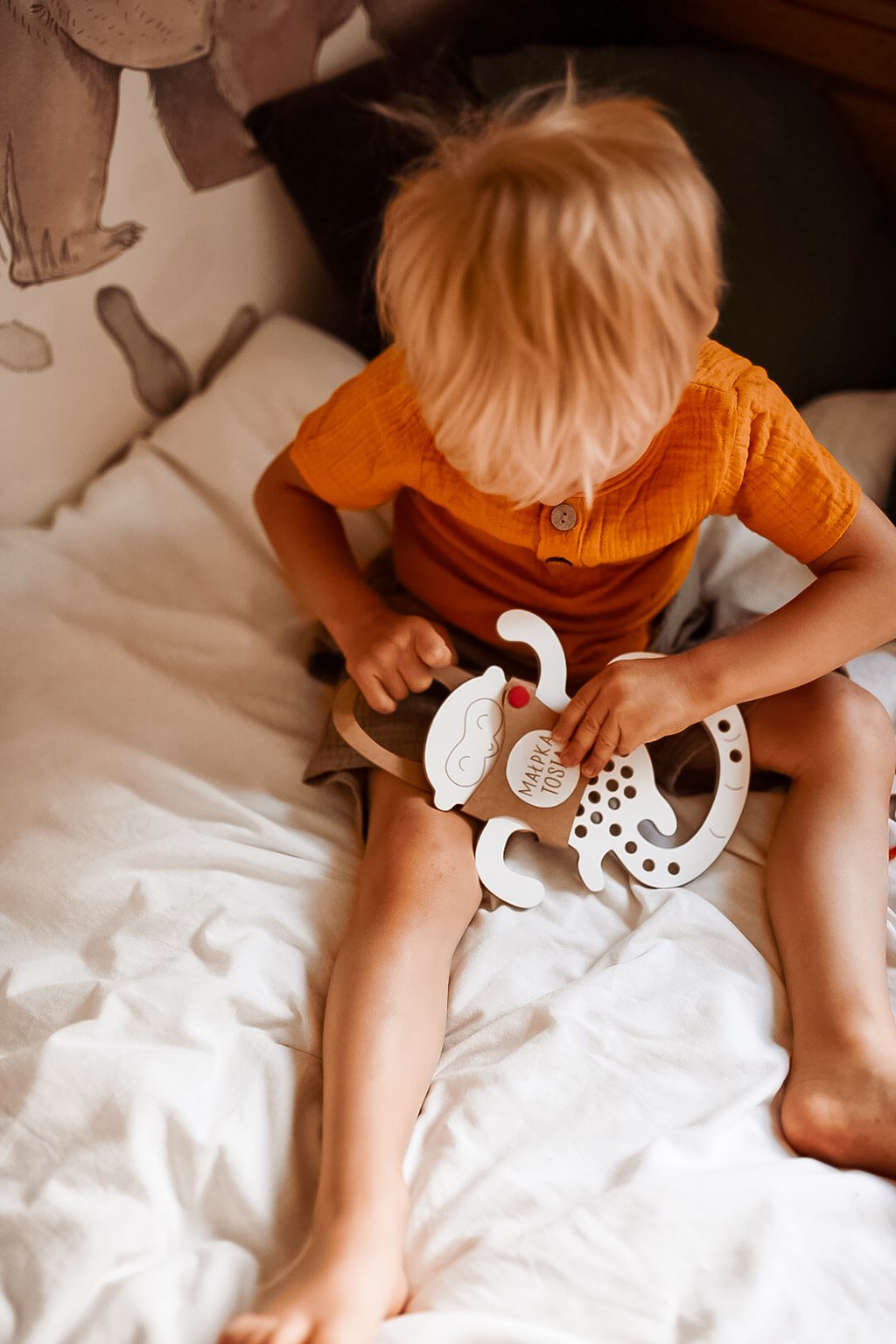 Dřevěná Montessori provlékačka Opička Emily