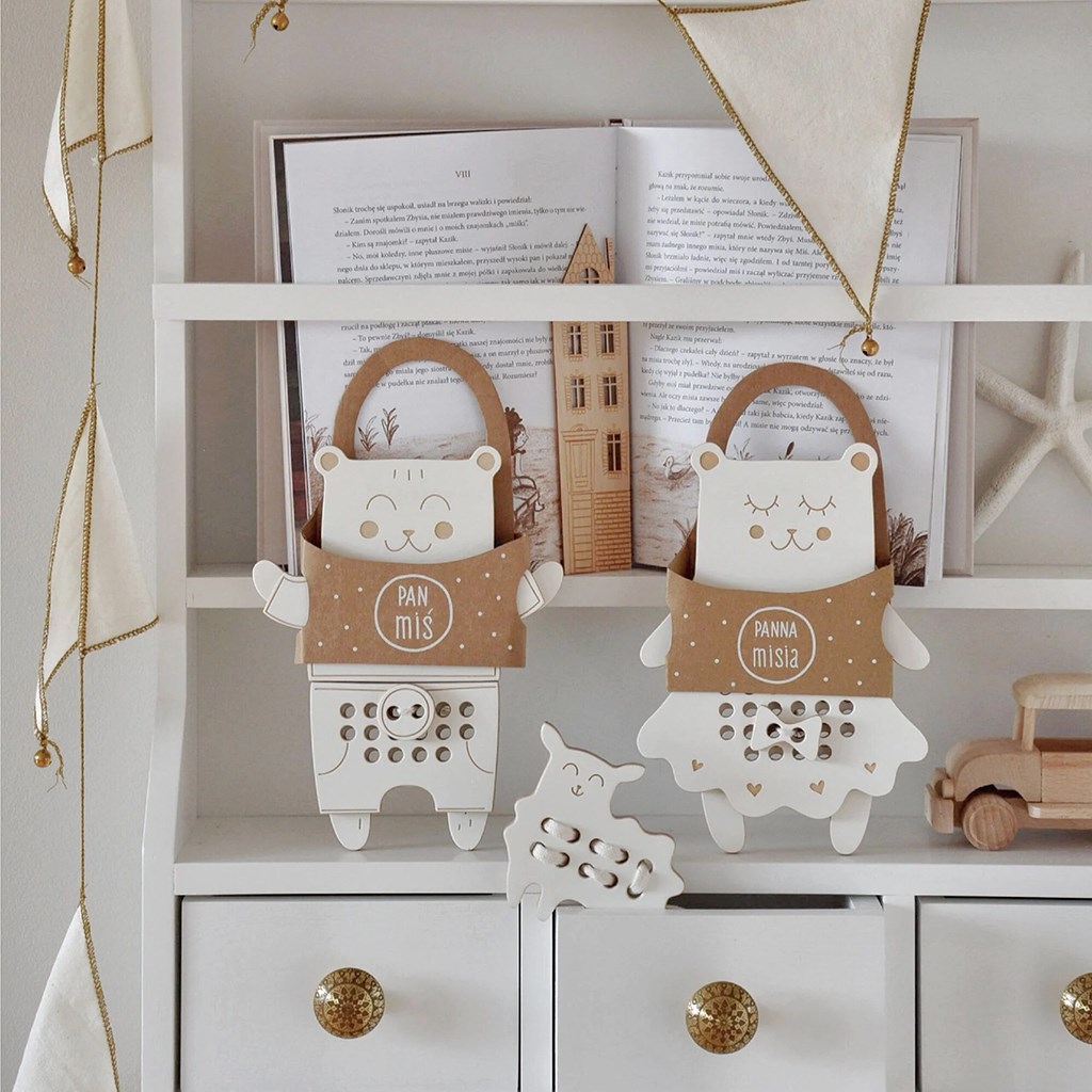 Dřevěná Montessori provlékačka Pan medvěd-pokročilá úroveň