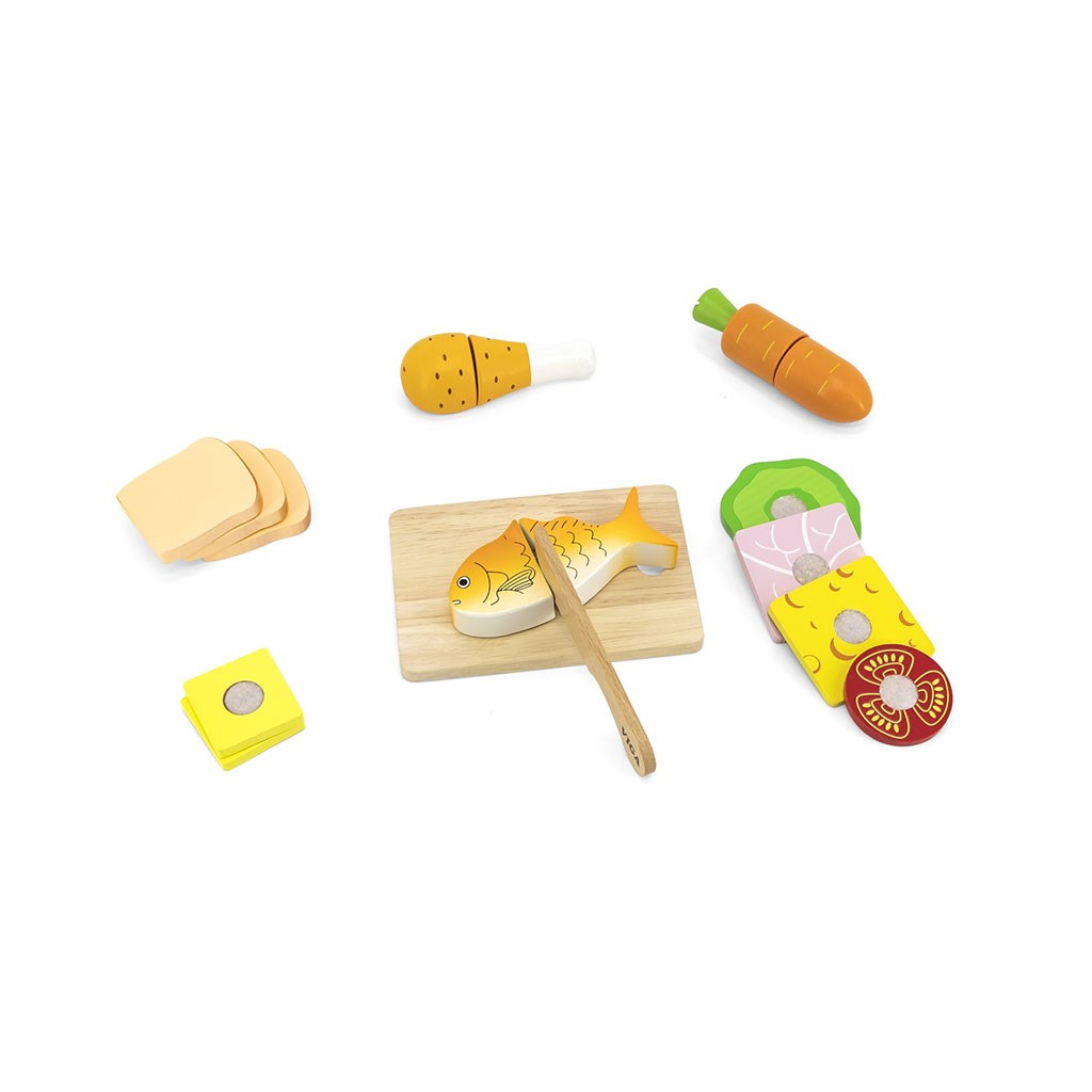 Dřevěná sada pro výuku vaření od společnosti Viga je vynikající hračkou pro rozvoj kulinářských a manuálních dovedností vašeho dítěte. Sada obsahuje prkénko a nůž, takže dítě pochopí krájení potravin na kousky a zároveň rozvíjí koordinaci ruka-oko. Každý dílek potraviny má suchý zip pro snadné sestavení a rozdělení.