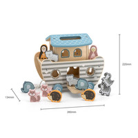 Hračka se skládá z figurek Noeho a jeho ženy, 5 dvojic zvířátek (slonů, lišek, ježků, zeber a ledních medvědů) a lodi na kolečkách s přiloženým provázkem na tahání. Ve střeše archy je vyříznuta rukojeť pro zvedání a na boční straně jsou otevírací dvířka.