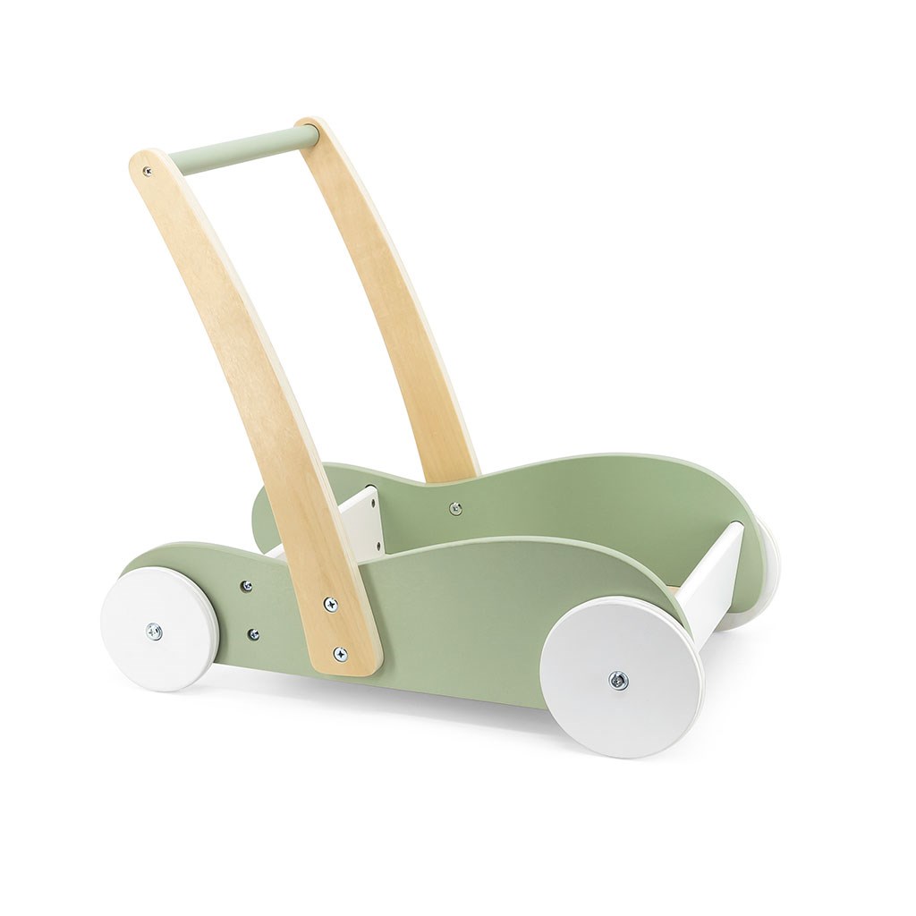 Hračka s jednoduchým designem je navíc vybavena velkými protiskluzovými koly a stabilní pevnou rukojetí. Velký úložný prostor umožňuje přepravu hraček různých velikostí a množství.