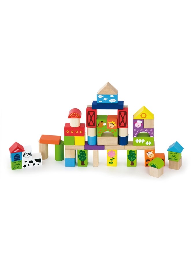 Krásné, barebné, dřevěné kostky v kyblíku Viga Farma Přináší 50 krásně barevných dílů i pro ty nejmenší stavitele. Stavebnice vydrží dlouhou dobu a dává vašemu dítěti mnoho let zajímavé a tvůrčí hry. Kostky mají různé tvary, velikosti, krásné barvy a obrázky s motivem zoo. Najdete zde tvary jako krychle, kvádr, trojuhleník, válec, obdélník, most, ad. Uvnitř balení je návod na skládání různých budov, měst a objektů, která inspiruje vaše dítě k tvůrčí zábavě. Tento kyblík s kostkami tak slouží jako motorická pomůcka, která děti učí poznávat tvary a zacházet s kostkami. Hračka pomáhá zlepšit manuální zručnost a obratnost, učí dítě rozpoznat tvary a barvy, zapojuje a rozvíjí smysl pro pozorování. Hračka je vyrobena z lakovaného dřeva. Naší prioritou je bezpečnost a kvalita našich výrobků, a proto barvy použité na hračkách nejsou toxické a splňují bezpečnostní standardy (EN71 a ASTM). Pro děti od 2 let. Hračka je vhodná jako krásný dárek pro naše nejmenší.
