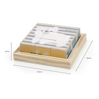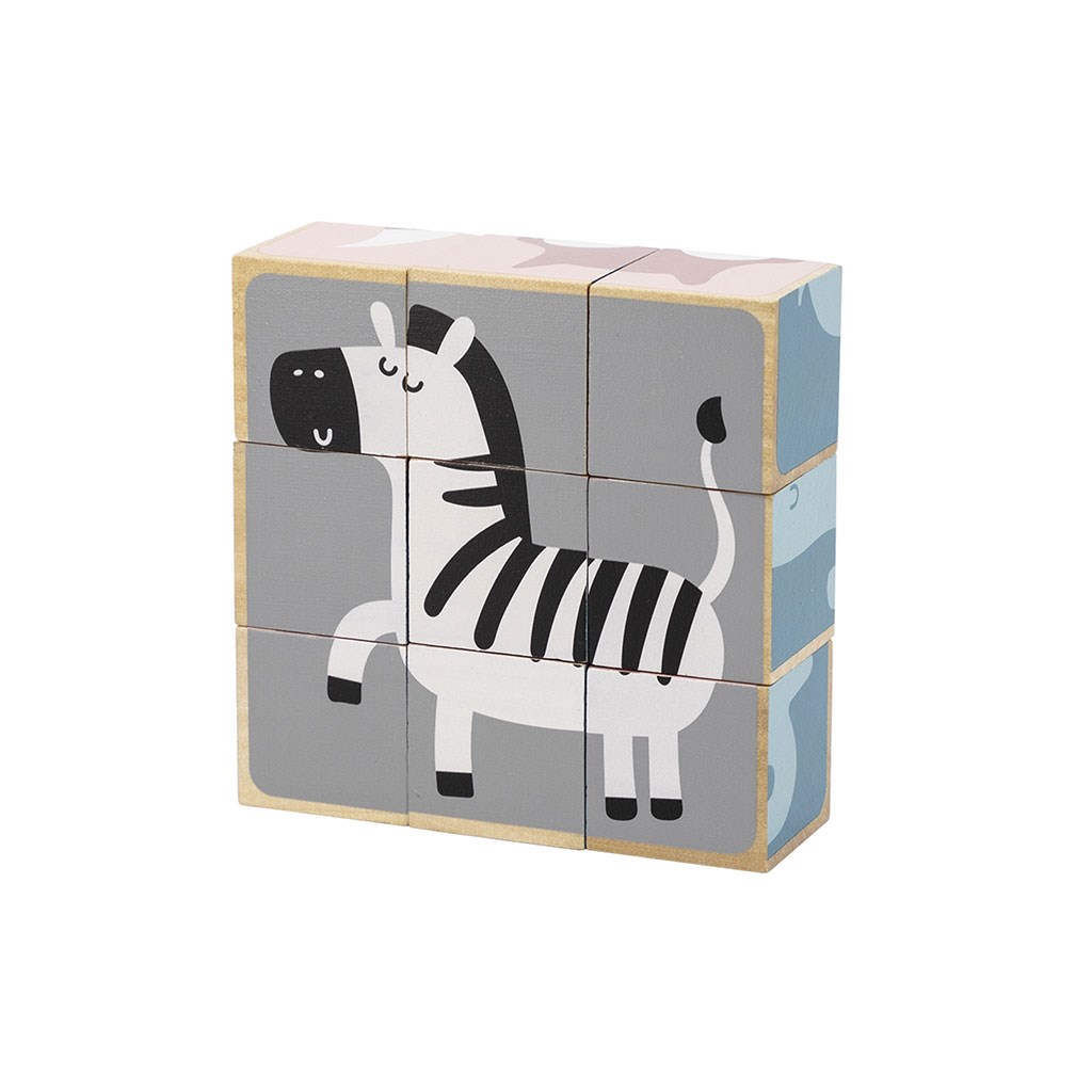 Rozvíjejte dovednosti svého dítěte s klasickou hračkou z dřevěných kostek. Z 9 kostek vaše dítě vytvoří na dřevěném podkladu 6 obrázků znázorňujících tato zvířátka: zebru, medvídka koalu, medvěda, slona, kuřátka a ježka.