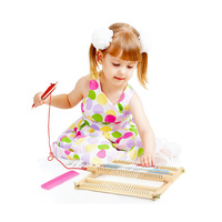 Dřevěný ruční tkalcovský stav, na kterém si dítě může vytvořit vlastní látky.