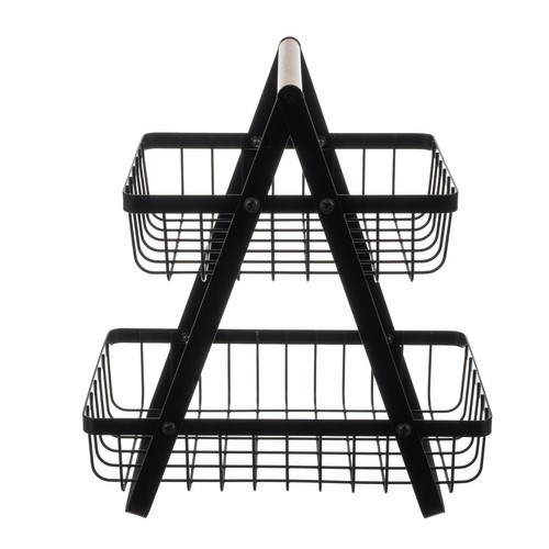 Dvoupatrový koš na ovoce, černý kovový košík na zeleninu do kuchyně, loftový styl