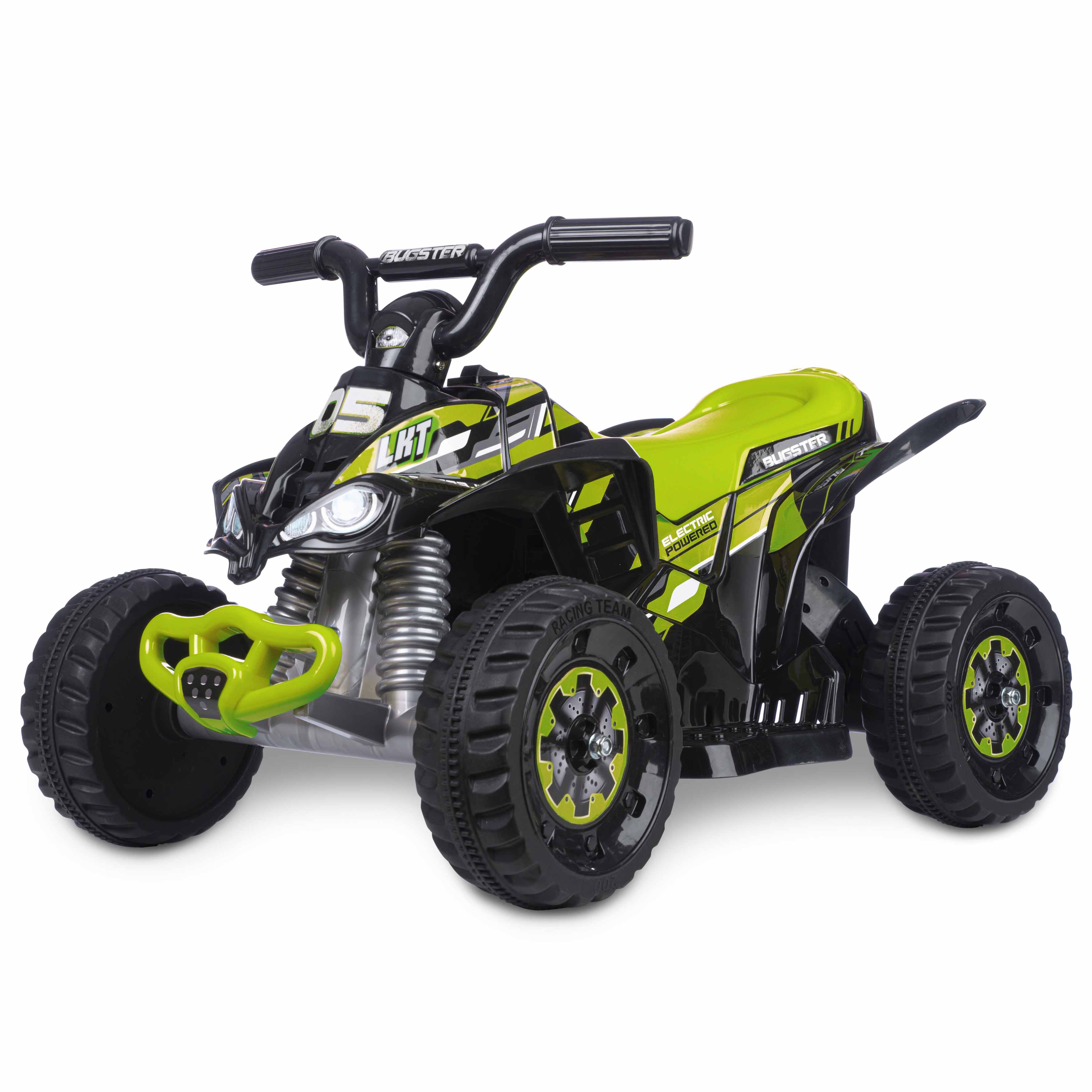 Elektrická čtyřkolka. Rozměry 46x72x46 cm. Jen zelená barva. Baterie 7.4V (15-18W, 3 Ah). Nosnost 30 kg. Rychlost 2,4 km/h.