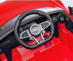 Po sešlápnutí plynového pedálu tohoto úžasného Audi R8 Spyder se vozidlo rozjede a zároveň se rozsvítí přední světlomety díky dvěma motorům. Velká, široká EVA kola s běhounem a sportovními ráfky zajistí mobilitu při výletech mimo domov, zatímco profilované sedadlo poskytne dítěti pohodlí a bezpečnost. Ocelové nápravy kol zajišťují stabilitu a odolnost vozidla. Zábava nekončí: hudební funkce na kokpitu, USB port, Bluetooth, přehrávání hudby, ovládání hlasitosti +/- , 4 písně po stisknutí tlačítka na volantu vlevo, zvuk klaksonu po stisknutí tlačítka na pravé straně volantu – to vše činí hru ještě zajímavější!