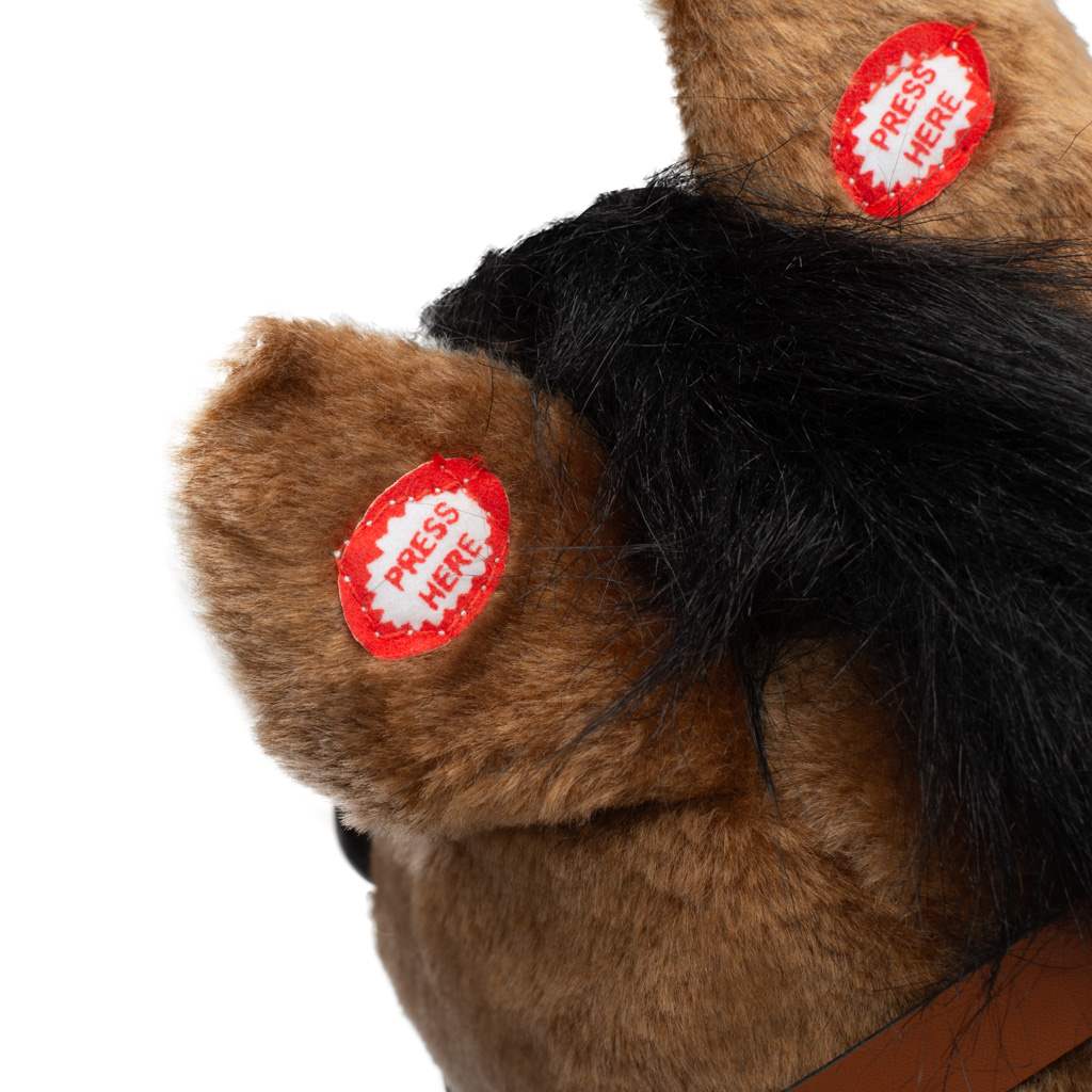 Krásný houpací koník PlayTo byl navržen pro děti, které mají rády houpání a dobrodružství. Je vyroben z hebkého a velmi příjemného na dotyk plyšového materiálu. Po stisknutí ouška koník pohybuje tlamičkou a přehraje českou písničku "Prší, prší, jen se leje" nebo po stisknutí druhého ouška slovenskou verzi "Prší, prší, len sa leje". Baterie se vkládají do pouzdra umístěného na bříšku. Hračka pomáhá dítěti rozvíjet koordinaci pohybů a podňecuje jeho představivost. Houpací lišty lze jednoduše odšroubovat.