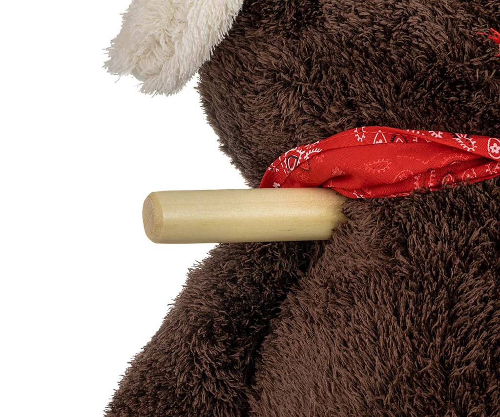 Houpačka je vyrobena z měkkého, na dotek příjemného plyšového materiálu. Stisknutím tlačítka na hlavě se přehraje ukolébavka. Stisknutím tlapky se zvedne ucho.