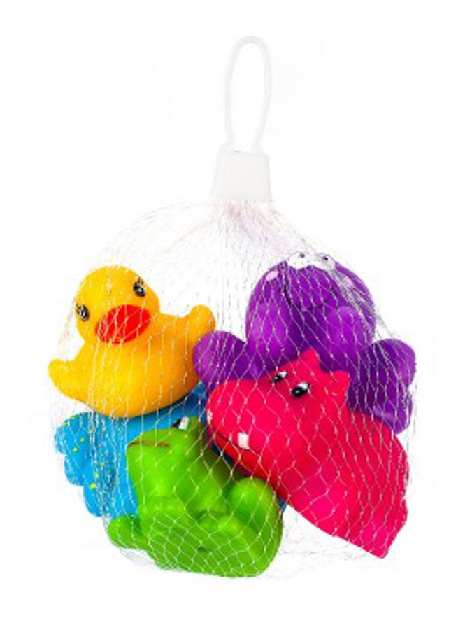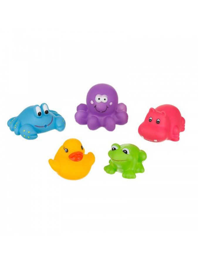 Barevné hračky do koupele Akuku. Sada 5 roztomilých barevných hraček - kachnička, žabka, hrošík, krab, chobotnice. Ideální na hraní ve vaně. Veselé barvy přitahnou pozornost našich nejmenších. Každá hračka má otvor, kterým můžete stříkat vodu. Zaoblené tvary zaručují bezpečnost během hry. Vyrobeny z bezpečných, vysoce kvalitních materiálů, neobsahují bisfenol A. Výška hraček 4 až 5 cm.