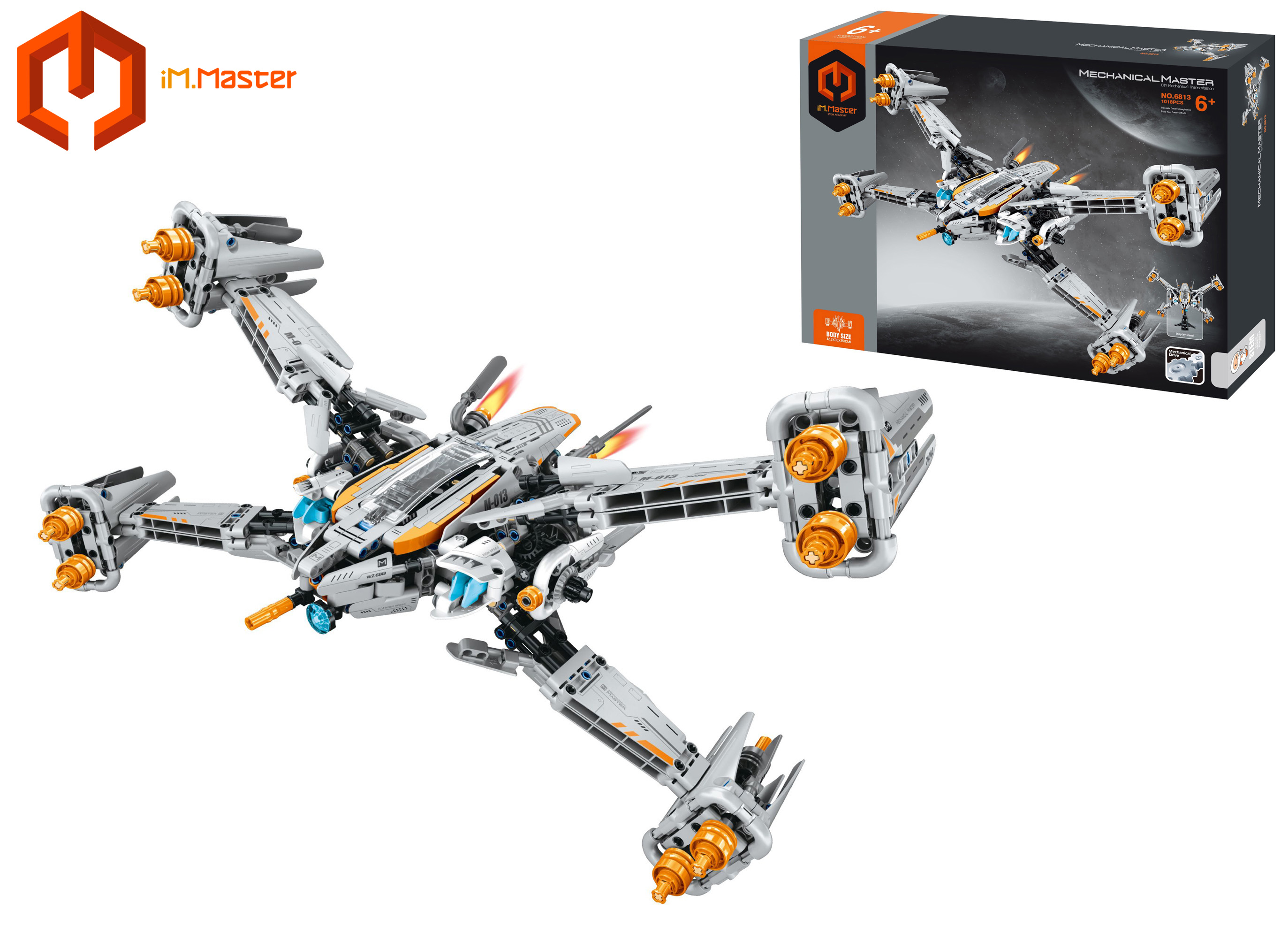 iM.Master Stavebnice vesmírná loď. Rozměry 42,3x26x35 cm. 1018 dílků. Součástí stojan. Bez efektů, baterií.