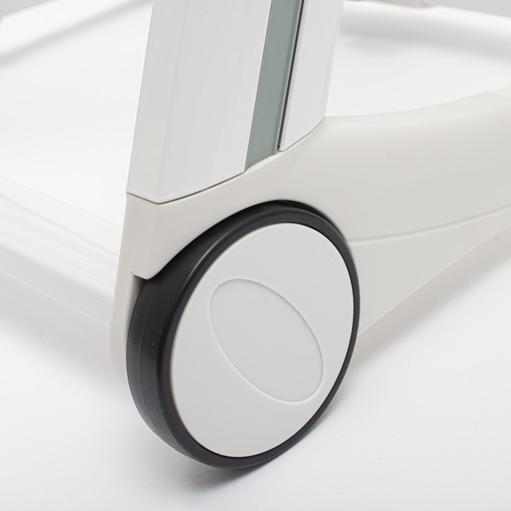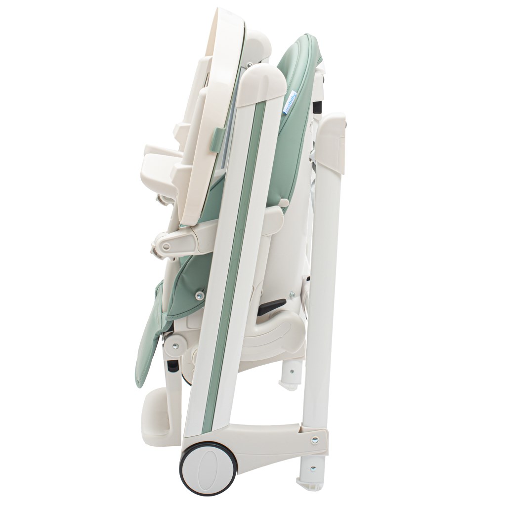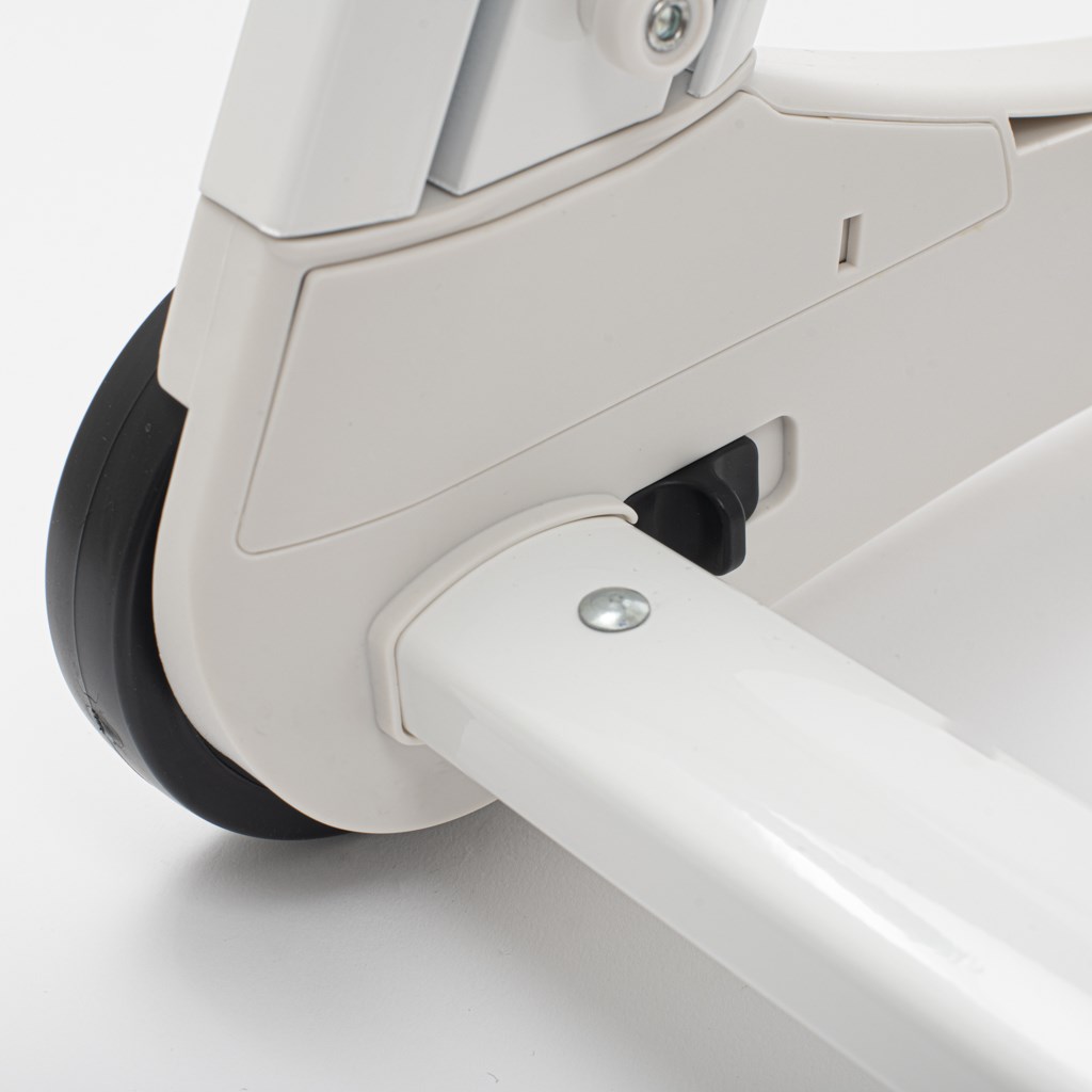 -Jídelní židlička je vybavena dvěma brzděnými kolečky a dvěma gumovými nožičkami.