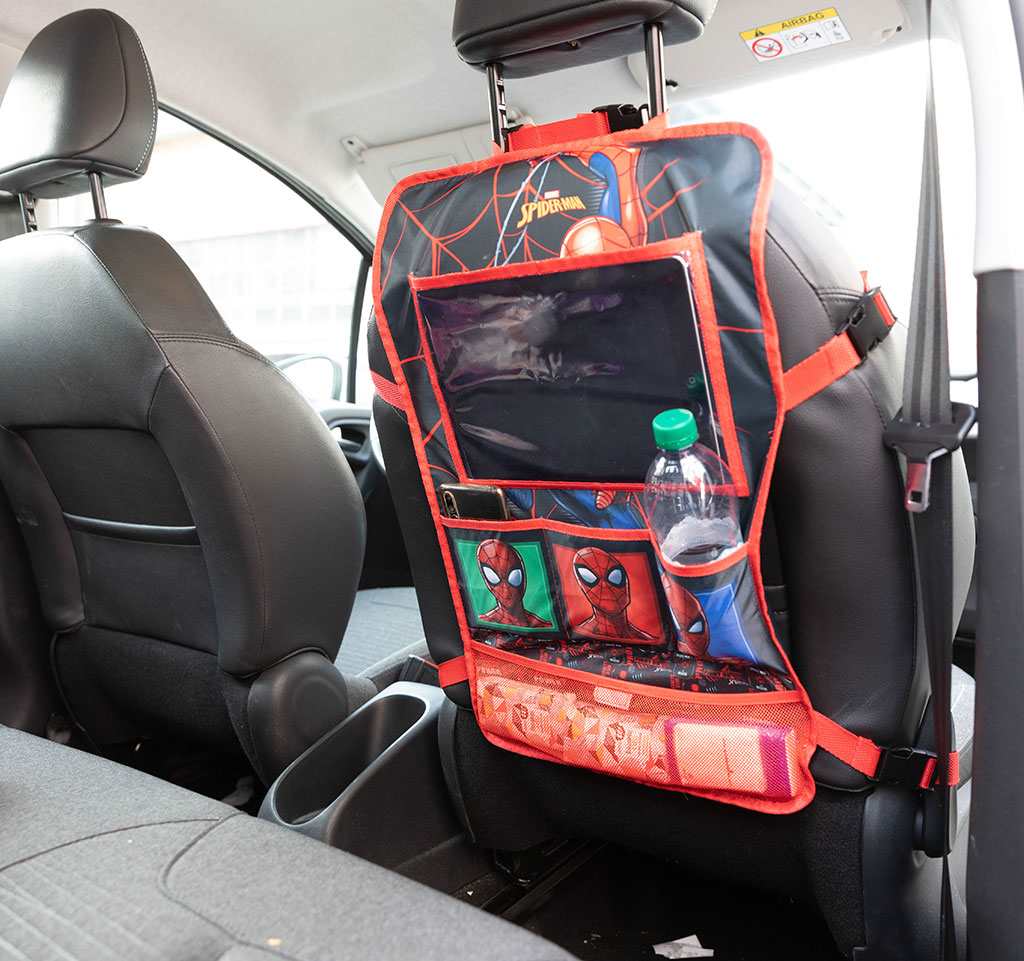 Praktický kapsář do auta, který slouží k uložení drobností a hraček, a také chrání zadní část potahu sedadla před poškrábáním a zašpiněním. Veselé barvy a obrázky s motivem Spiderman zpříjemní Vašemu dítěti cestování. Univerzální – sedí ke každému sedadlu a dá se jednoduše připevnit pomocí klipu a tkaniček. Polyesterový omývatelný materiál, který lze jednoduše čistit. Rozměry 40x60 cm. Licenční produkt.