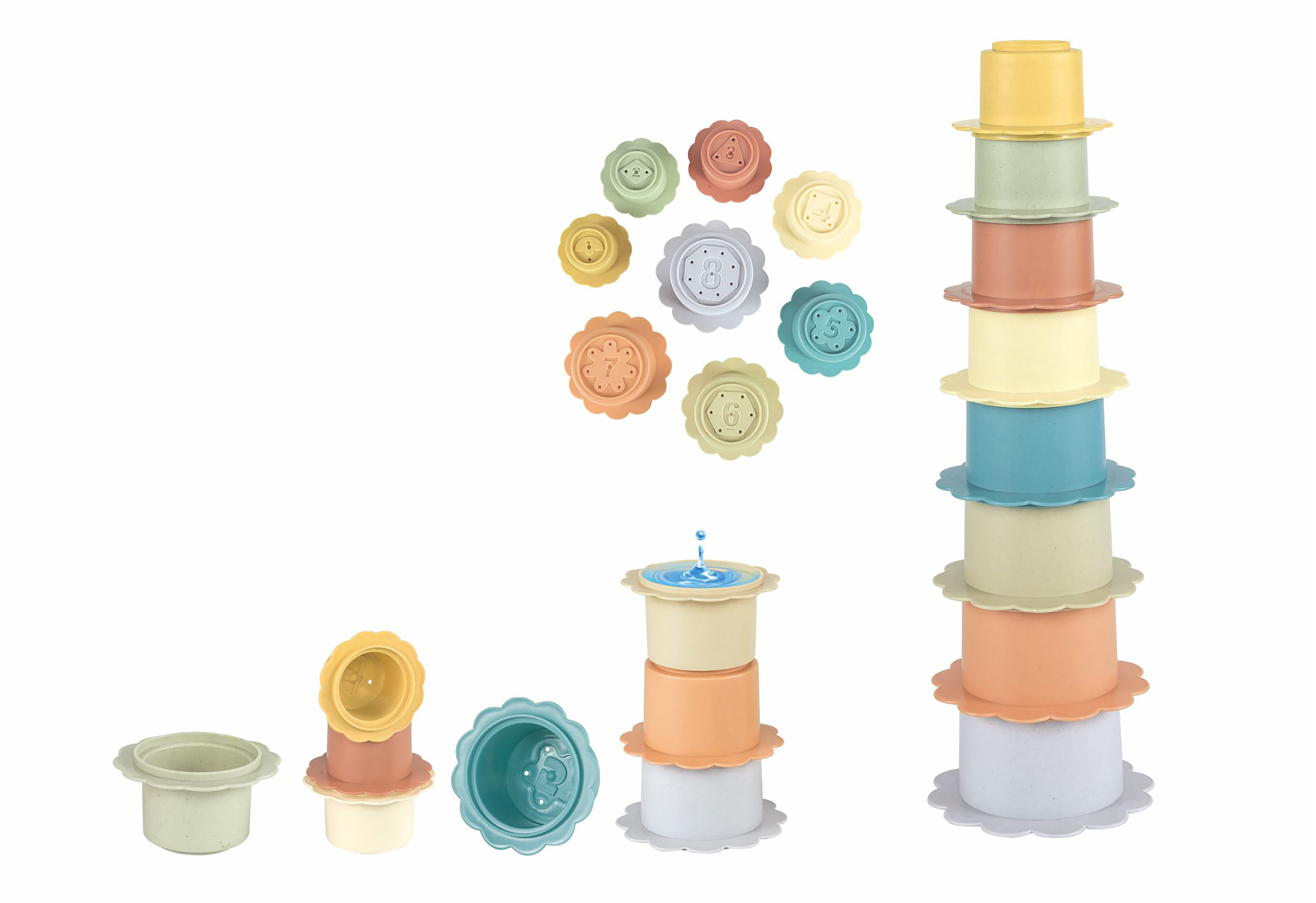 Kelímky stohovací věž, květ. Balení obsahuje 8 ks. Rozměry postavené věže 33,3x10,2x10,2 cm.