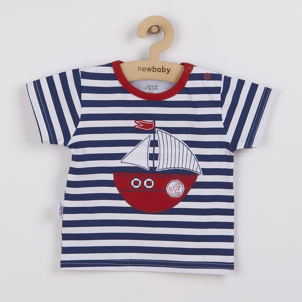 Krásná a cool 2-dílná letní bavlněná soupravička české značky New Baby Marine. Soupravička obsahuje tričko a kraťásky. Tričko s krátkým rukávem s barevným lemováním okolo krčku je zdobeno krásnou nášivkou lodičky a je celopotištěné modernimi pruhy. Nášivka je podlepená látkou proti poškrábání. Tričko má zapínání na ramínku pro snadné oblékání. Pohodlné kraťásky jsou jednobarevné s malým obrázkem kotvy. Super letní hit a užitečný kousek do šatníku malého chlapečka. Soupravička je vyrobená s ohledem na potřeby malých dětí s velmi příjemného a jemného materiálu. Složení 100% bavlna.