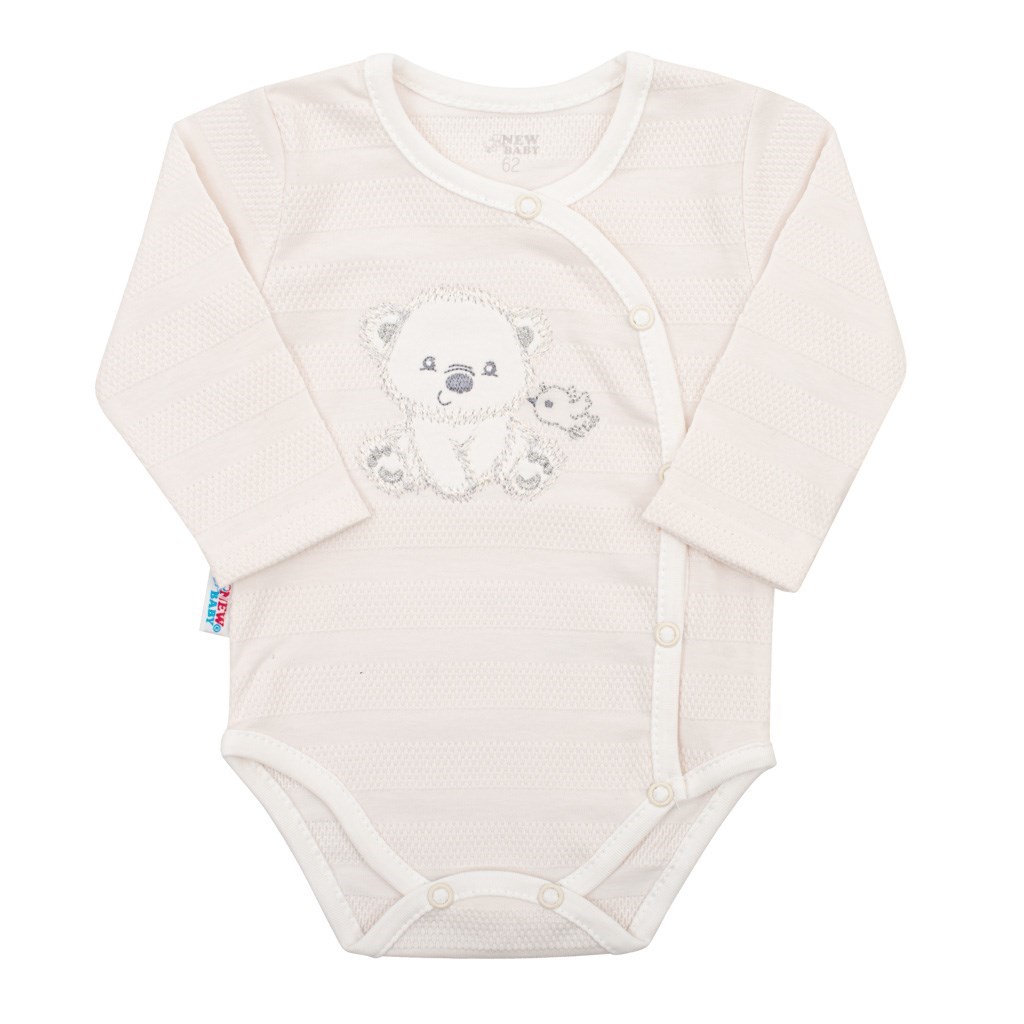Roztomilá kojenecká 4-dílná soupravička české značky New Baby Sweet Bear pro miminka. Soupravička je vyrobena z velmi příjemňoučkého, měkkého a kvalitního materiálu, který je vhodný pro miminka a je vhodná nejen do porodnice. Obsahuje celorozepínací body s dlouhým rukávkem, dupačky, kabátek a čepičku. Celorozepínací body zdobí vyšitý obrázek medvídka a ptáčka. Dupačky zdobí roztomilý obrázek medvídka a ptáčka. Zapínání na cvočky na ramínkách a mezi nožičkami usnadní oblékání a přebalování. Kabátek je jednobarevný s krásným lemováním okolo ručiček. Zapínání je na cvočky po celé délce. Čepička je krásně tvarovaná na ouška a zavazuje se na tkaničky, díky čemuž dobře drží na hlavičce miminka a nepadá. Je velmi praktická a netlačí na hlavičku miminka. Celá soupravička má nový neobyčejný design s atraktivním vzorem látky. V této soupravičce, která je precizně a kvalitně ušitá se bude miminko cítit velmi příjemně. Je navržena s ohledem na potřeby miminka a je vhodná i jako milý dáreček. Soupravička je v praktické Eko krabičce. Složení: 100% bavlna.